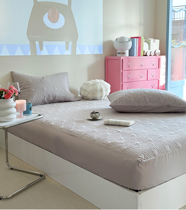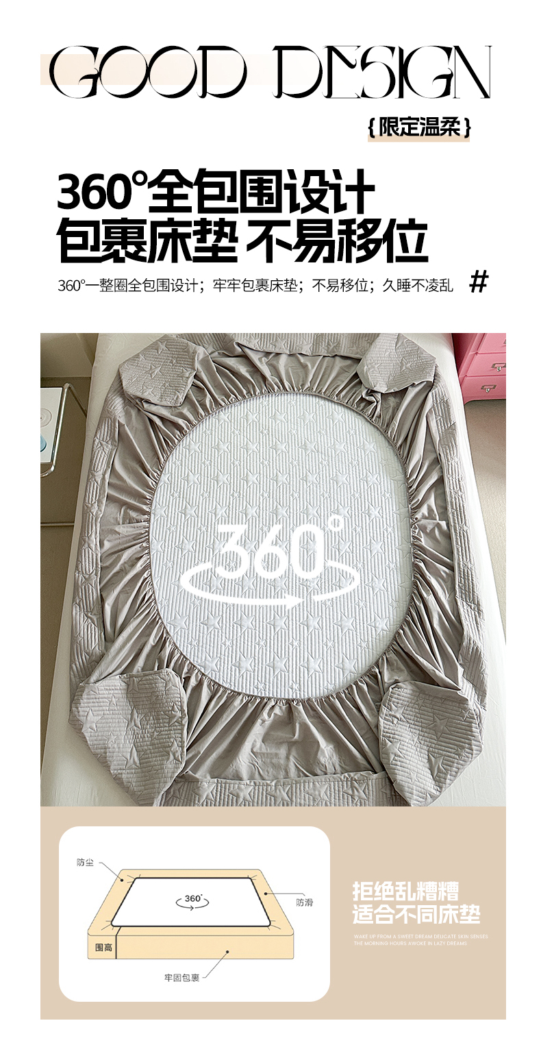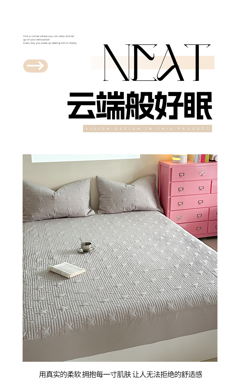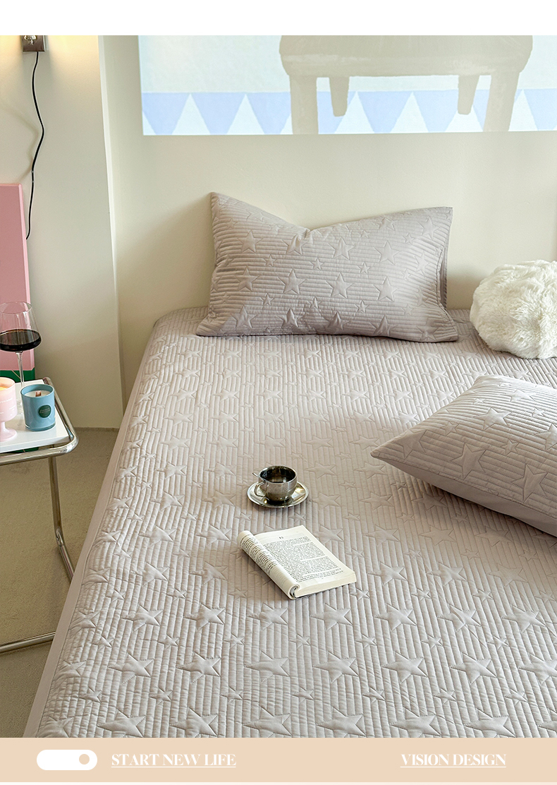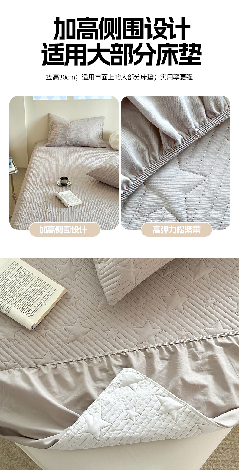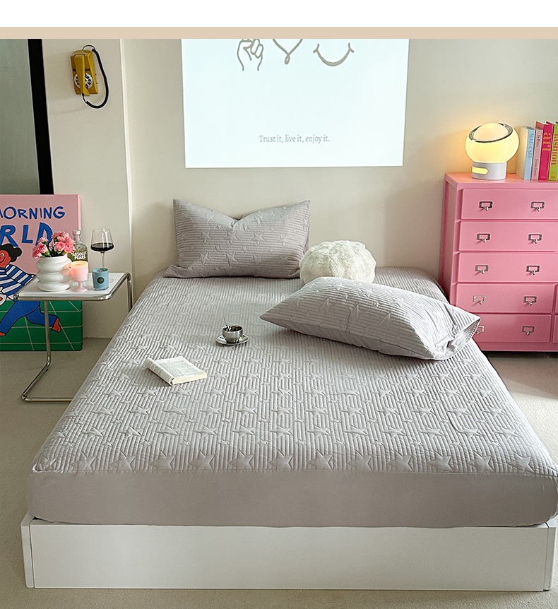 (总)漫调2025新款全棉星星床垫保护套夹棉床笠-繁星,组合图仅供参考,繁星白,繁星粉,繁星灰,繁星咖,繁星绿,繁星杏