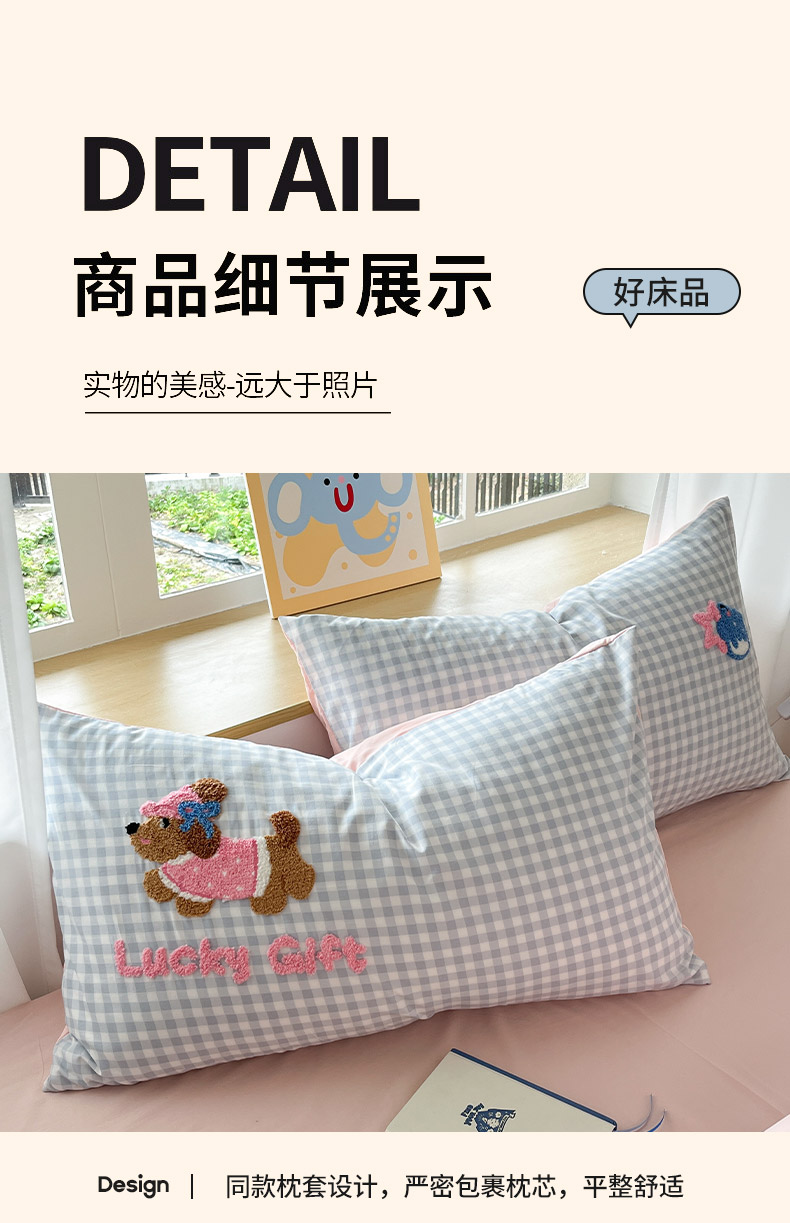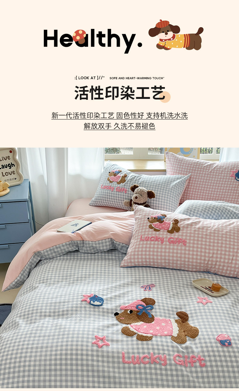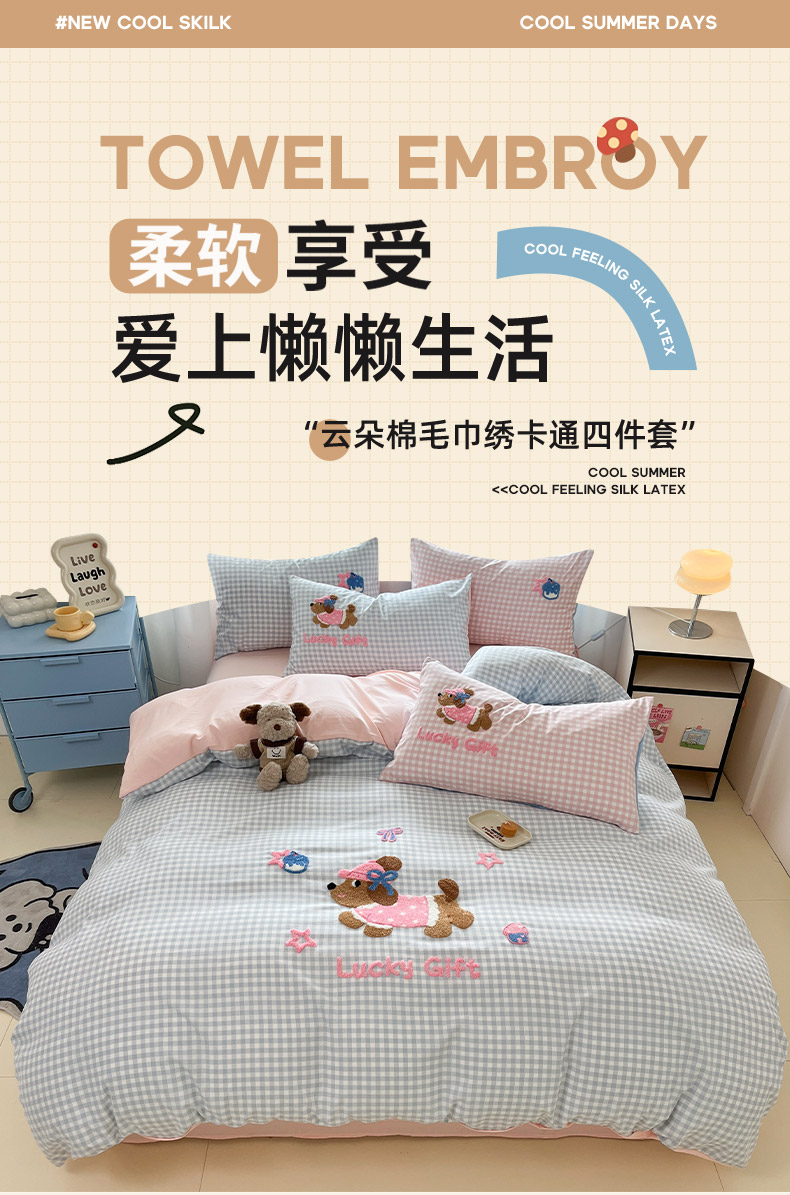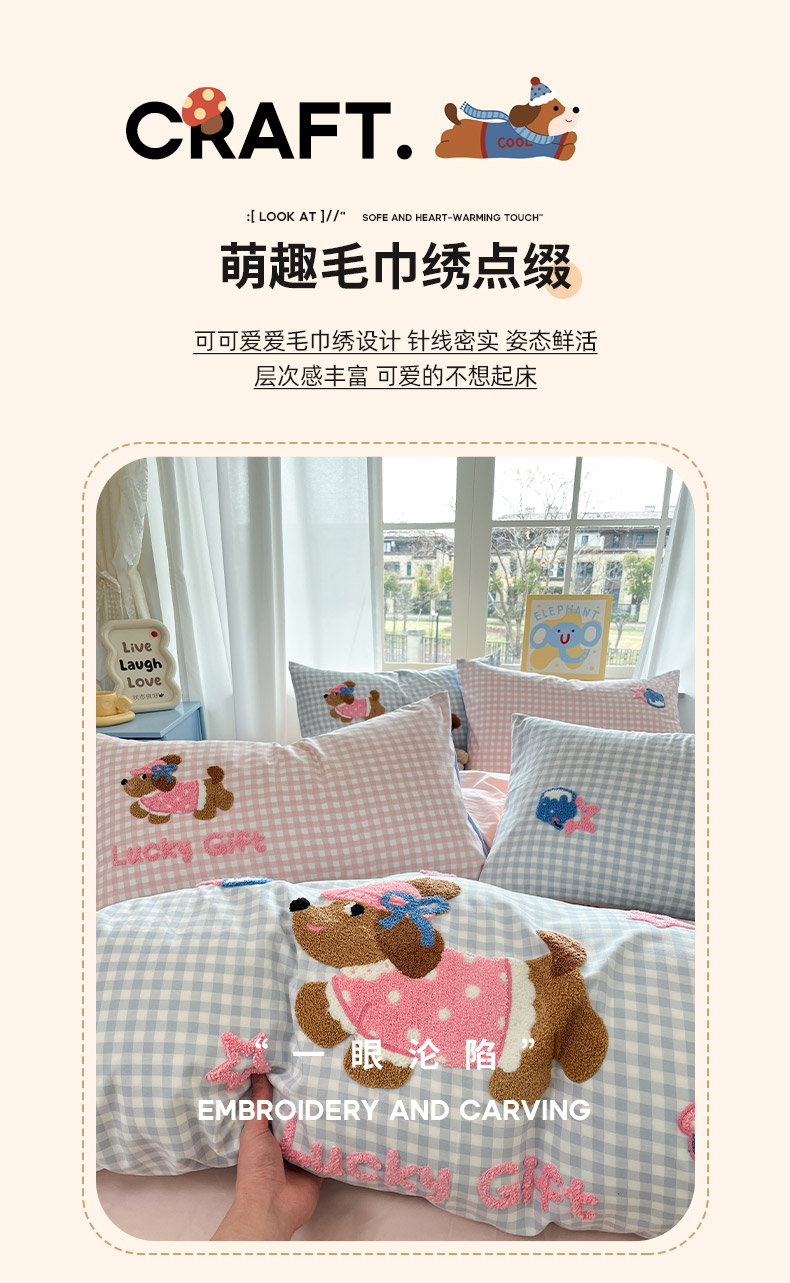 商品名称:乐坊2025新款云朵棉毛巾绣四件套 腊肠狗-蓝格