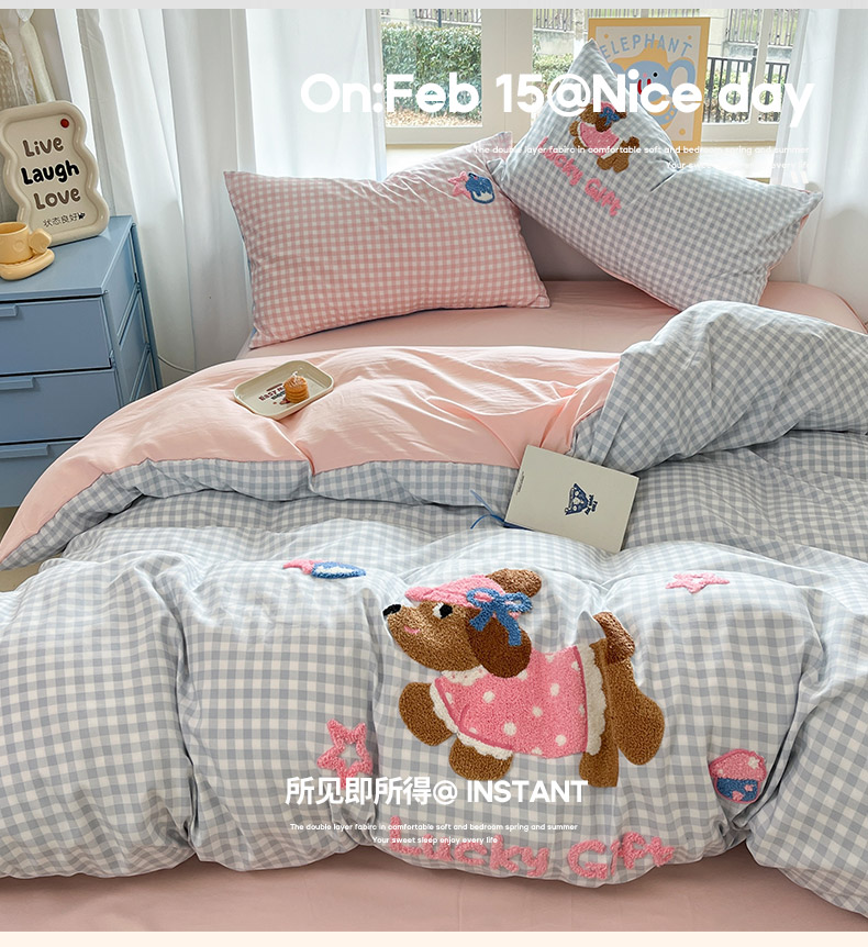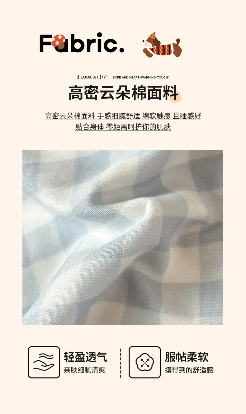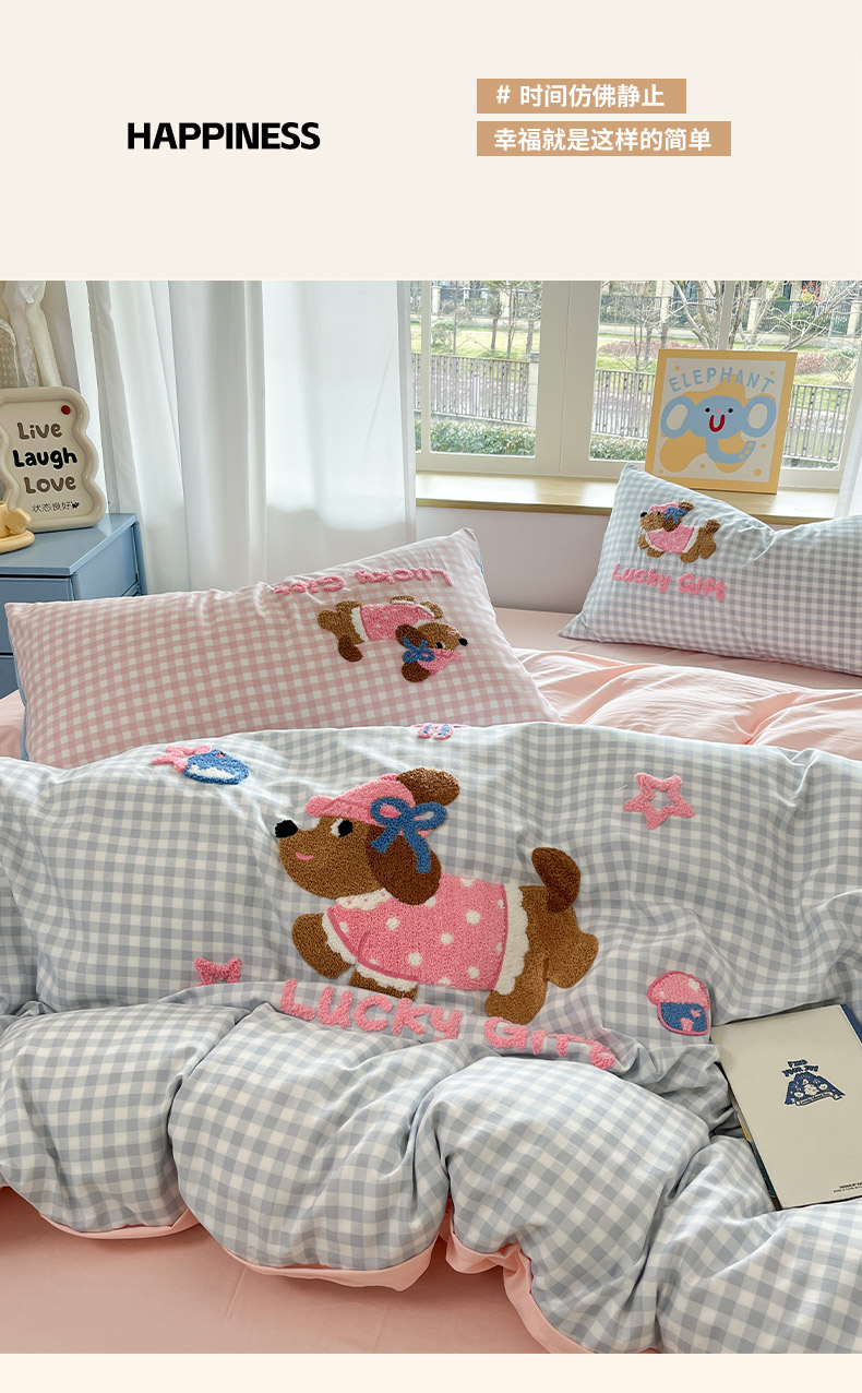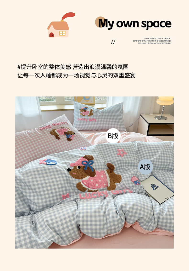 商品名称:乐坊2025新款云朵棉毛巾绣四件套 腊肠狗-蓝格