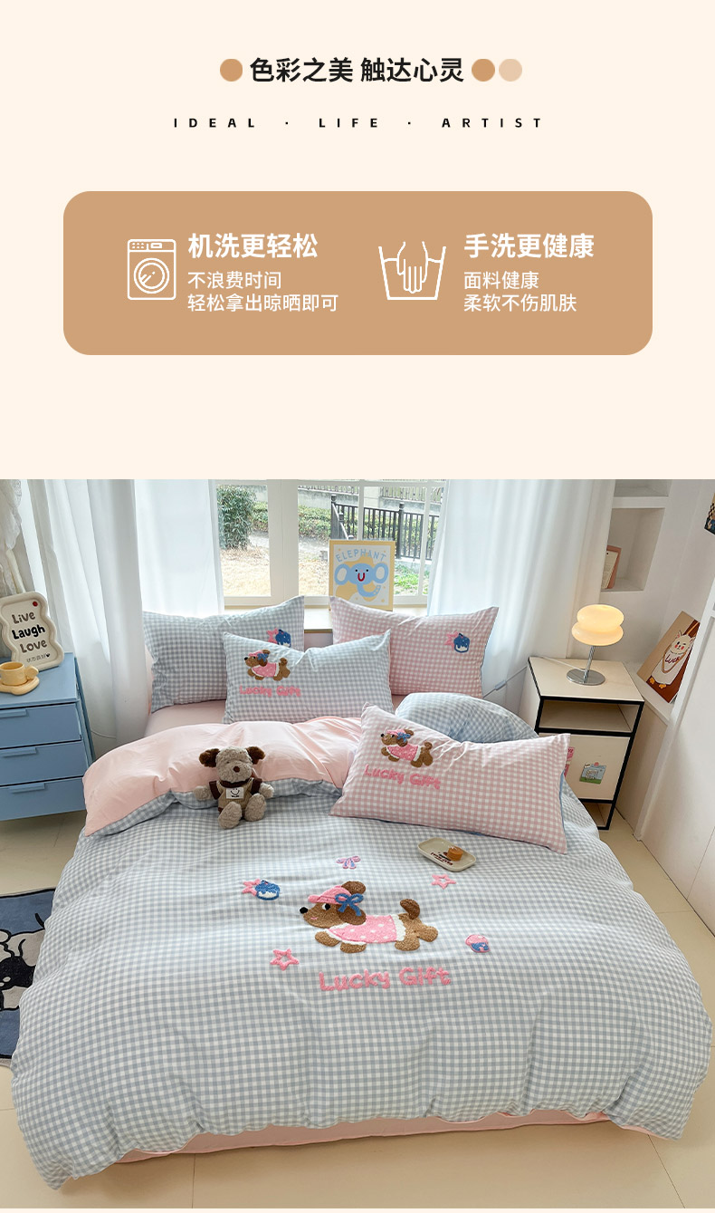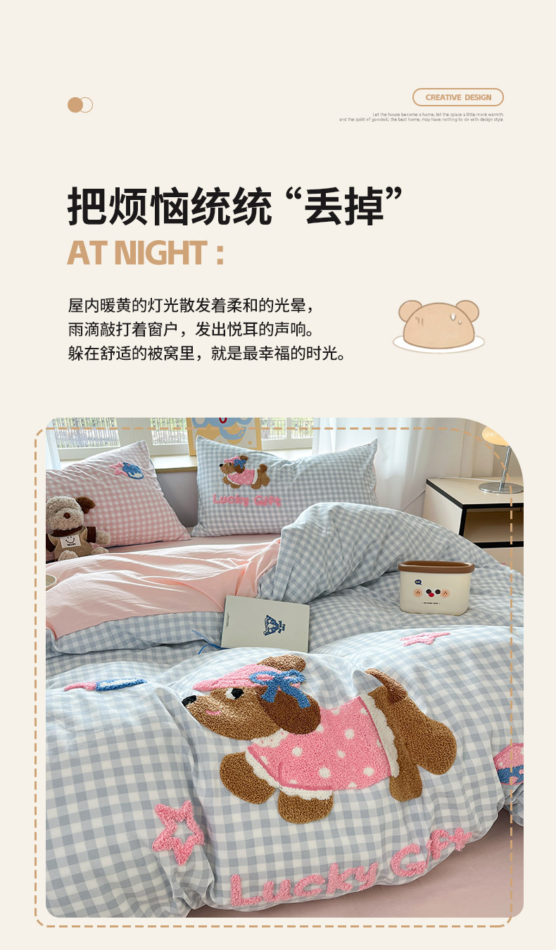 (总)乐坊 2025新款300g高克重兔绒卡通贴布绣牛奶绒四件套冬季加厚保暖,萌宠猫咪白粉,萌宠猫咪粉,可爱兔兔,快乐企鹅,美拉德狗狗,熊熊腊肠狗