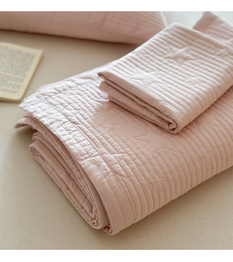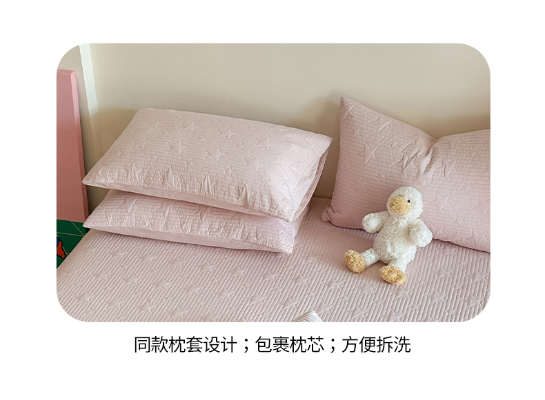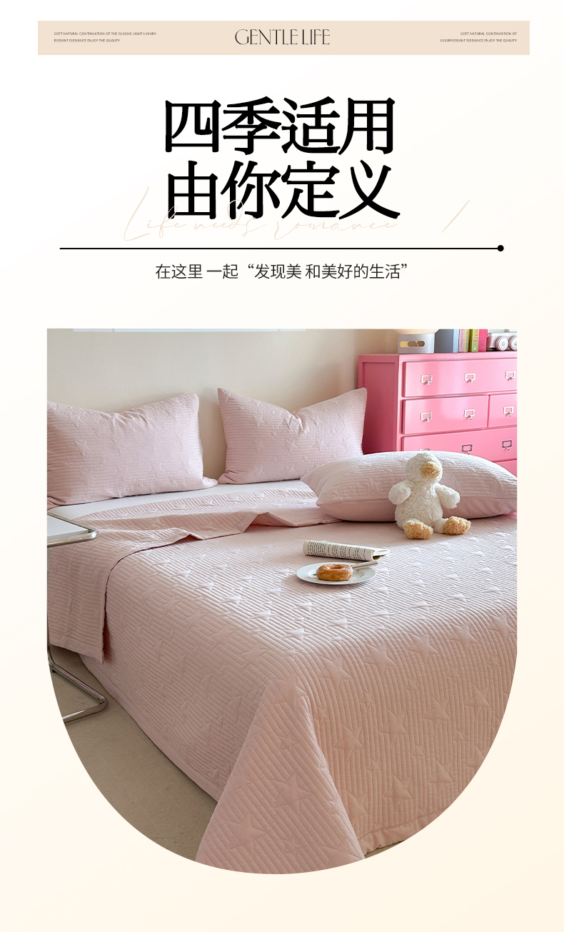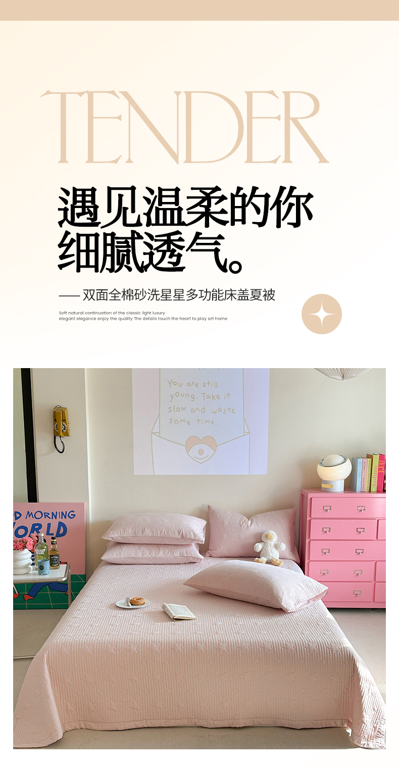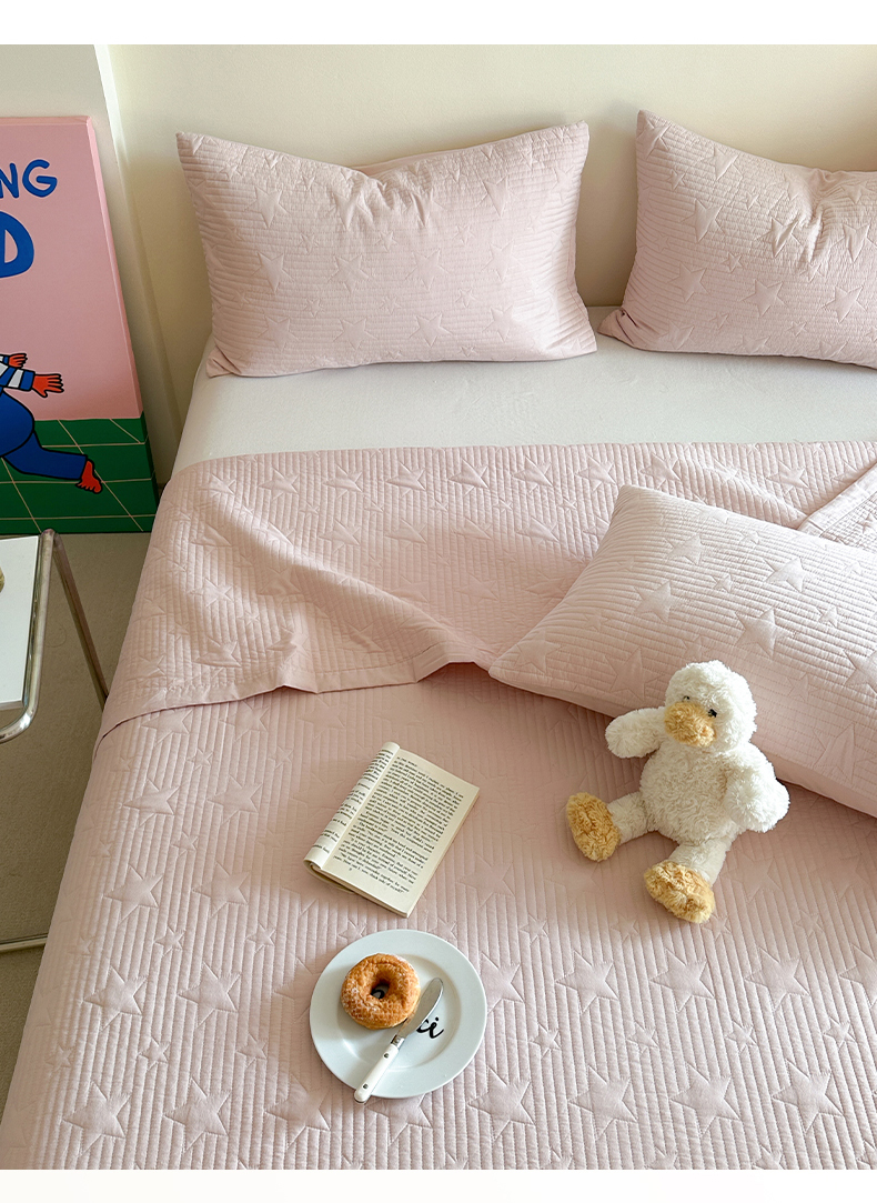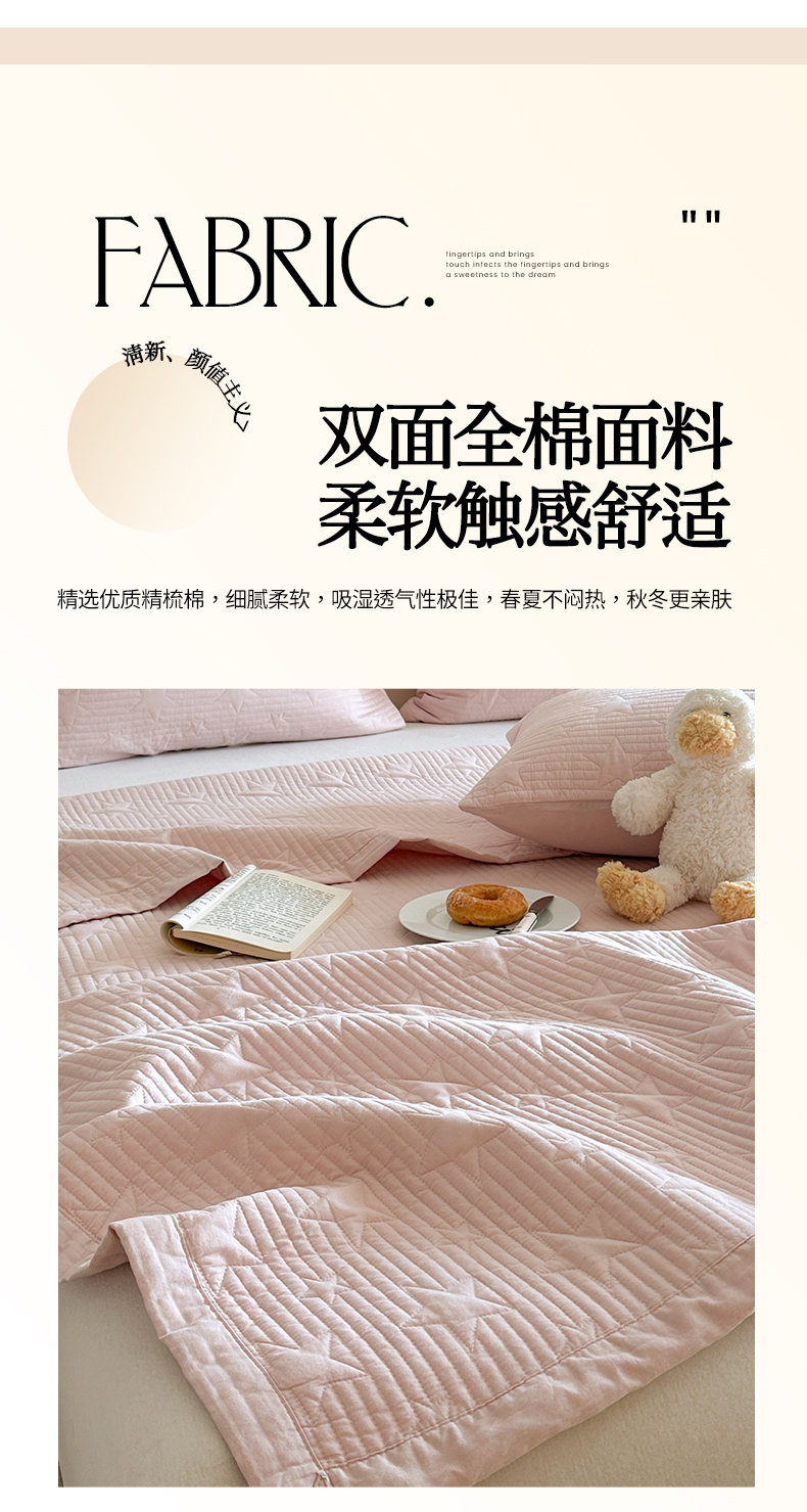 商品名称:漫调2025新款双面全棉砂洗水洗星星绗缝床盖三件套多功能夏被 繁星粉