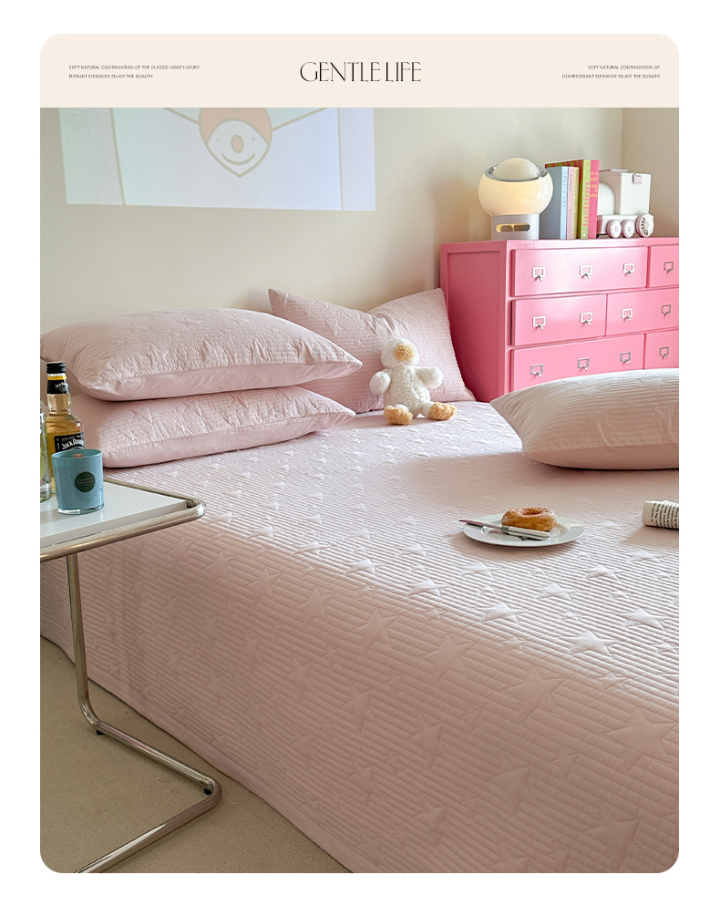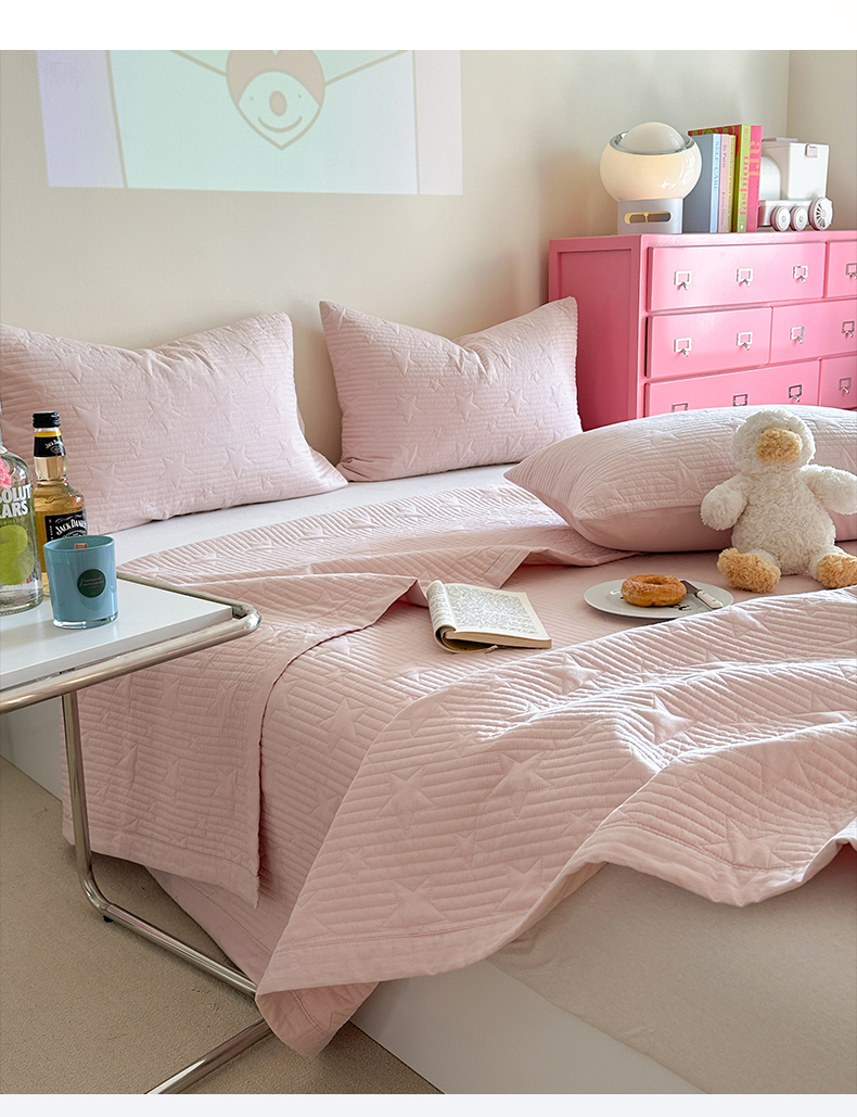 漫调2025新款双面全棉砂洗水洗星星绗缝床盖三件套多功能夏被 繁星粉