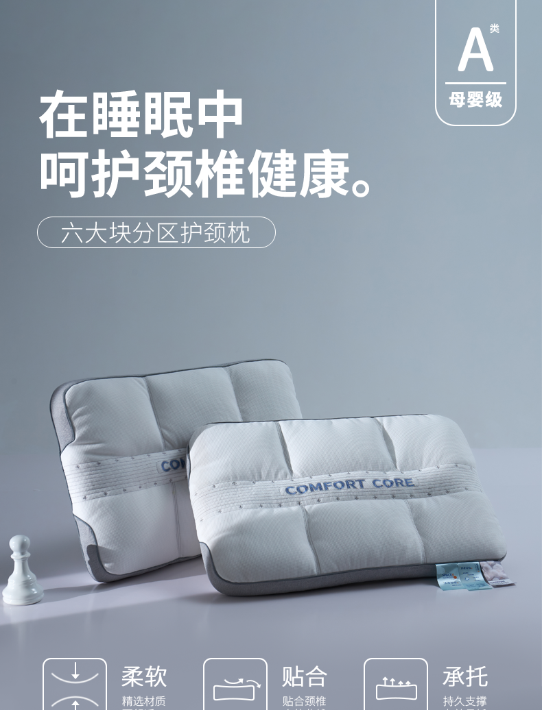 当前位置: 91家纺网 > 商品网购 > 枕头/枕芯/保健枕/颈椎枕 > 普通枕芯 > (总)晚儿 2025新款六大块分区护颈枕-暮色星河