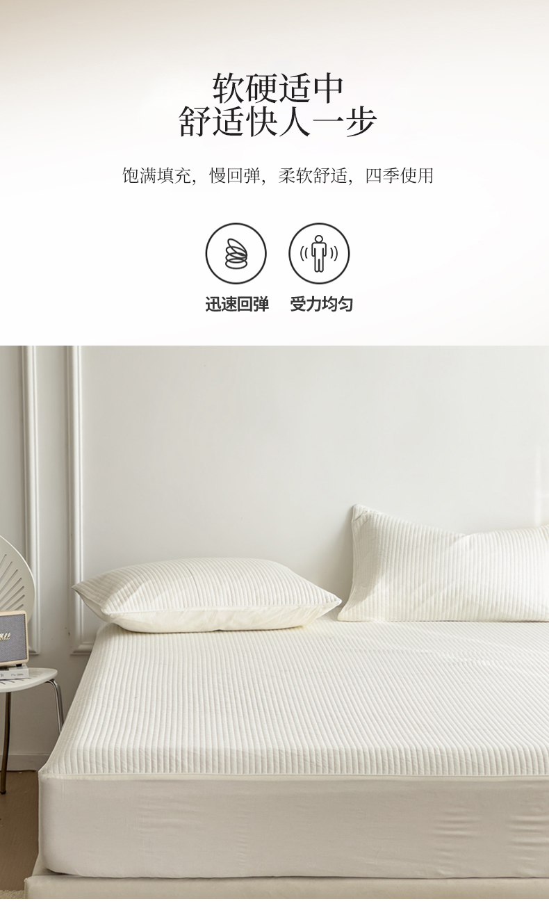(总)法芙娜家纺 全棉40S斜纹13372水洗棉密道床垫,白色,粉色,抹茶,浅灰,深灰