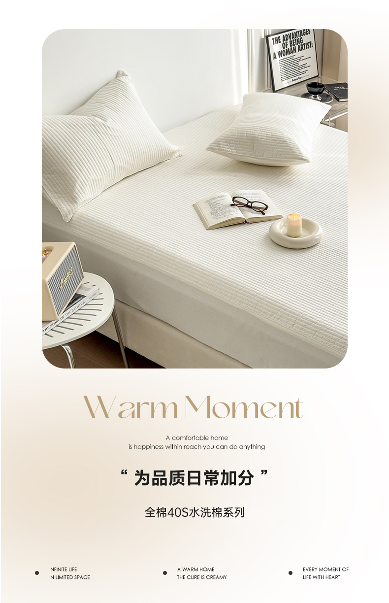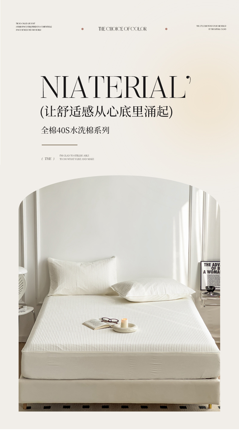 法芙娜家纺 2025新款全棉40S水洗棉床笠 白色