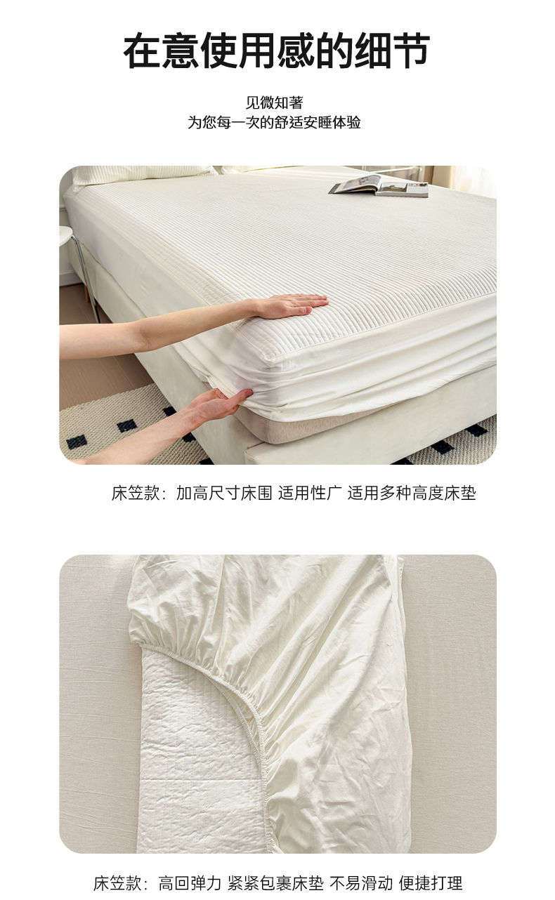 (总)安芯丝60S全棉夹棉床笠 抗菌防螨,白色,灰色