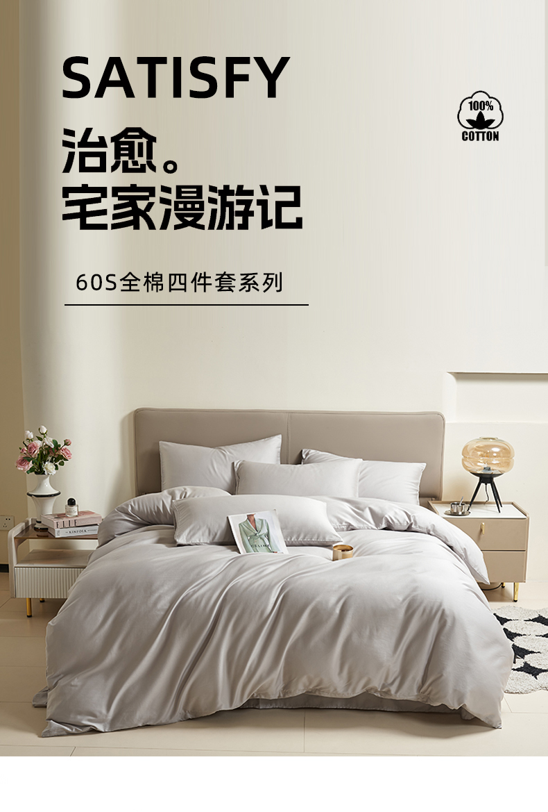 当前位置: 91家纺网 > 商品网购 > 床品套件 > 四件套 > 全棉普通四件套 > 暖芯家纺 2025新款60S黑标全棉四件套 浅松灰