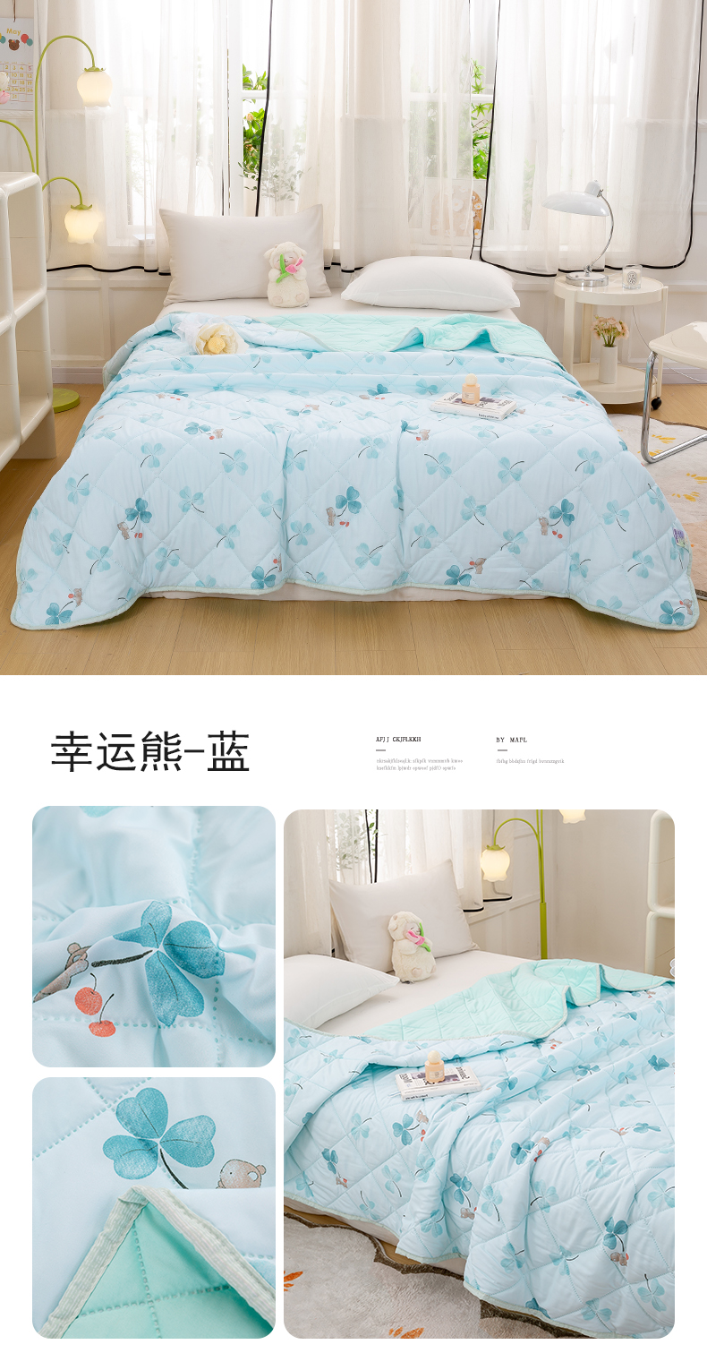 商品名称:憨豆家纺 2025新款纳米印花超声波夏被简约可机洗空调被夏凉被礼品被直播跨境 幸运熊-蓝