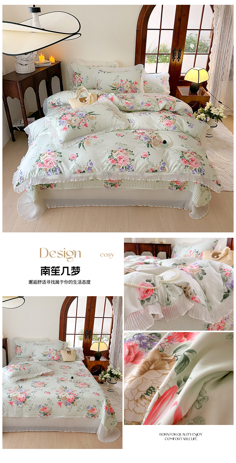 商品名称:赫本家纺 2025新款水洗棉花边款夹棉床盖三件套四件套 南笙几梦