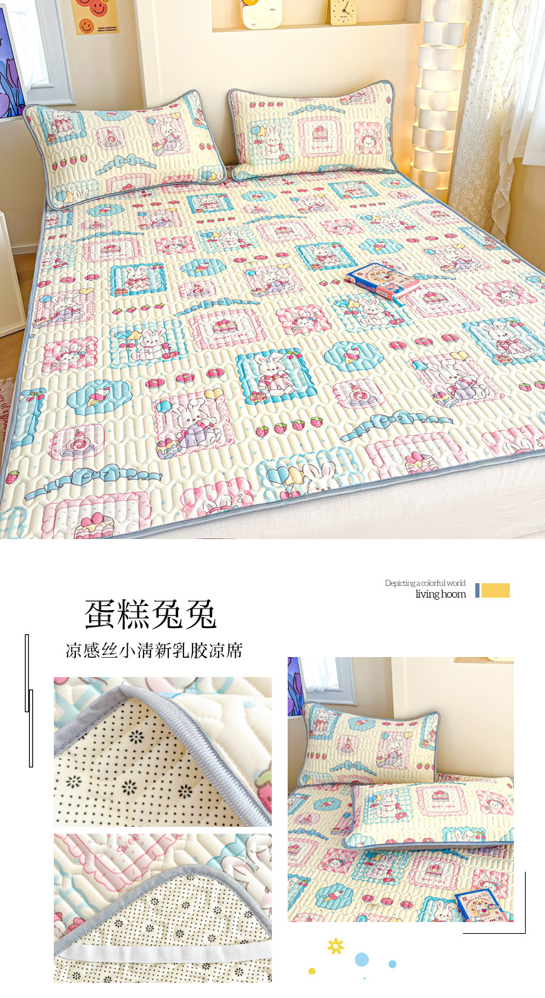 柒月家居 2025新款小清新乳胶凉席 蛋糕兔兔