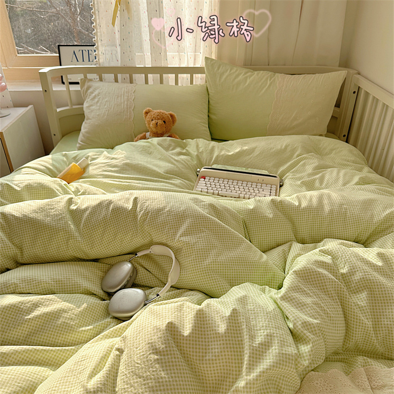 (总)顾里家纺 2024新款格子蝴蝶结毛巾绣牛奶绒四件套,粉格蝴蝶结,粉蓝蝴蝶结,黄格蝴蝶结,蓝格蝴蝶结,绿格蝴蝶结