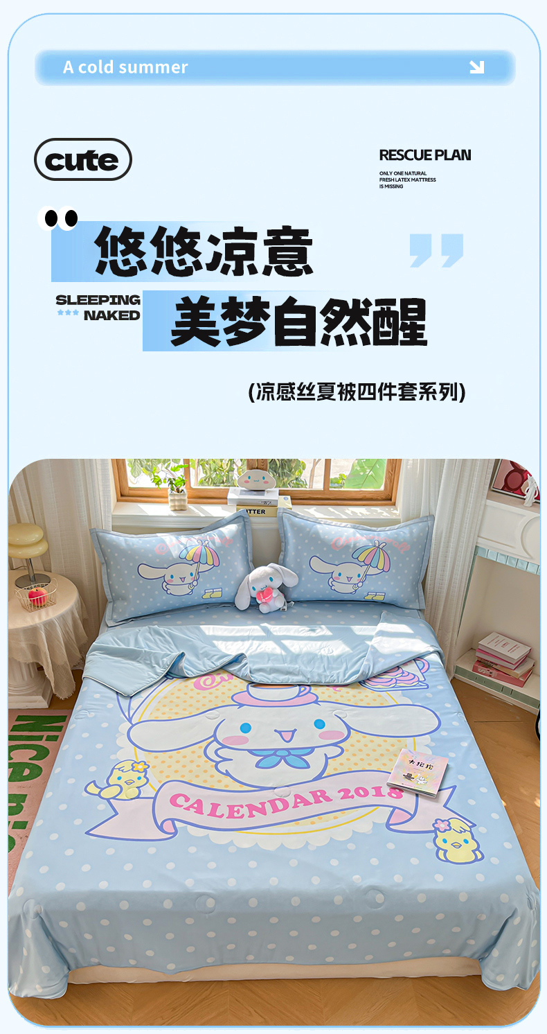 当前位置: 91家纺网 > 商品网购 > 床上用品 > 凉席 > 凉席套件 > 博雅 2025新款 三丽鸥凉感丝夏被冰丝凉席组合四件套 欢乐玉桂狗
