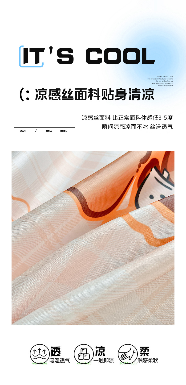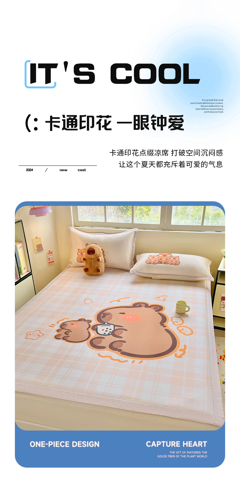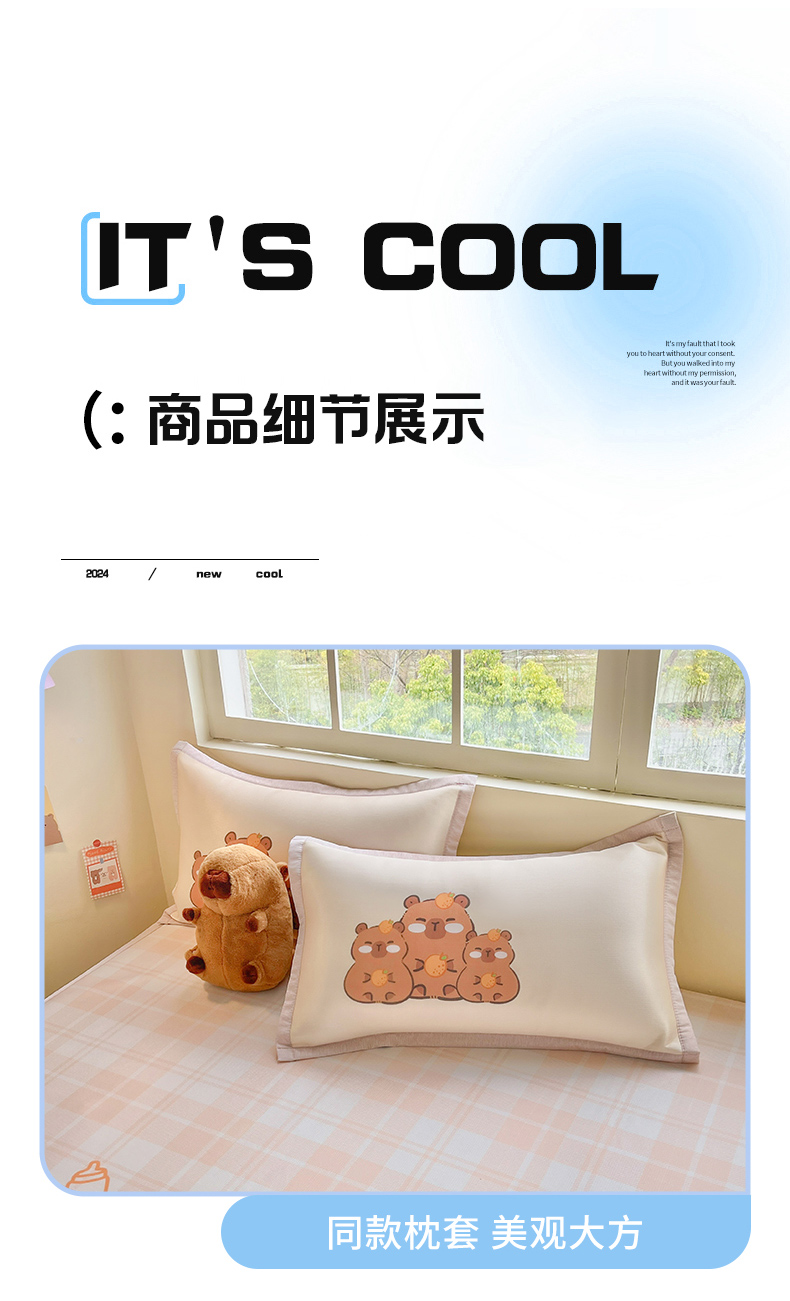 商品名称:博雅 2025新款独家版权A类大版数码印花1200D冰丝凉席 可爱卡皮巴拉