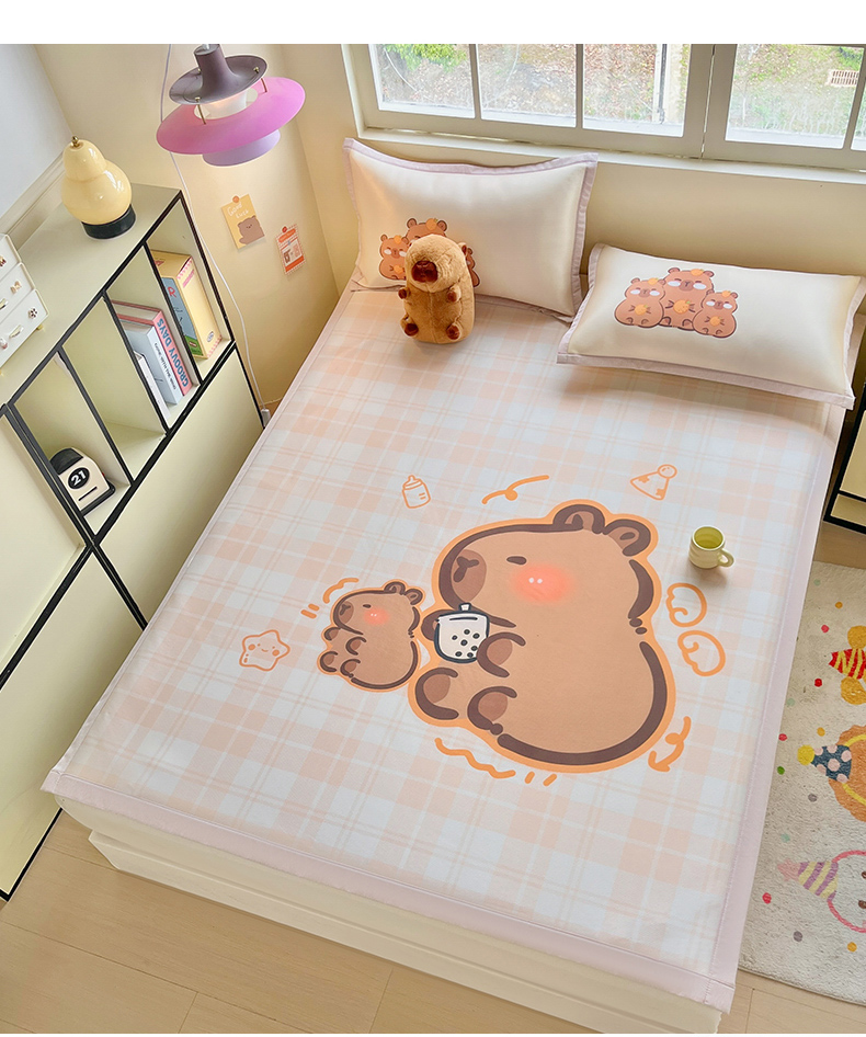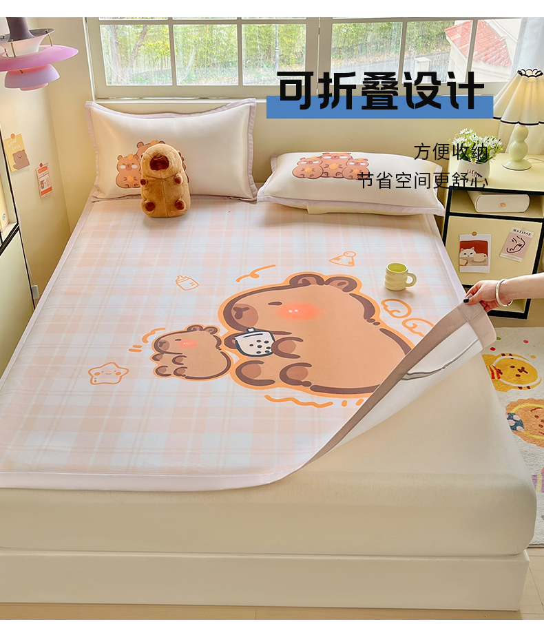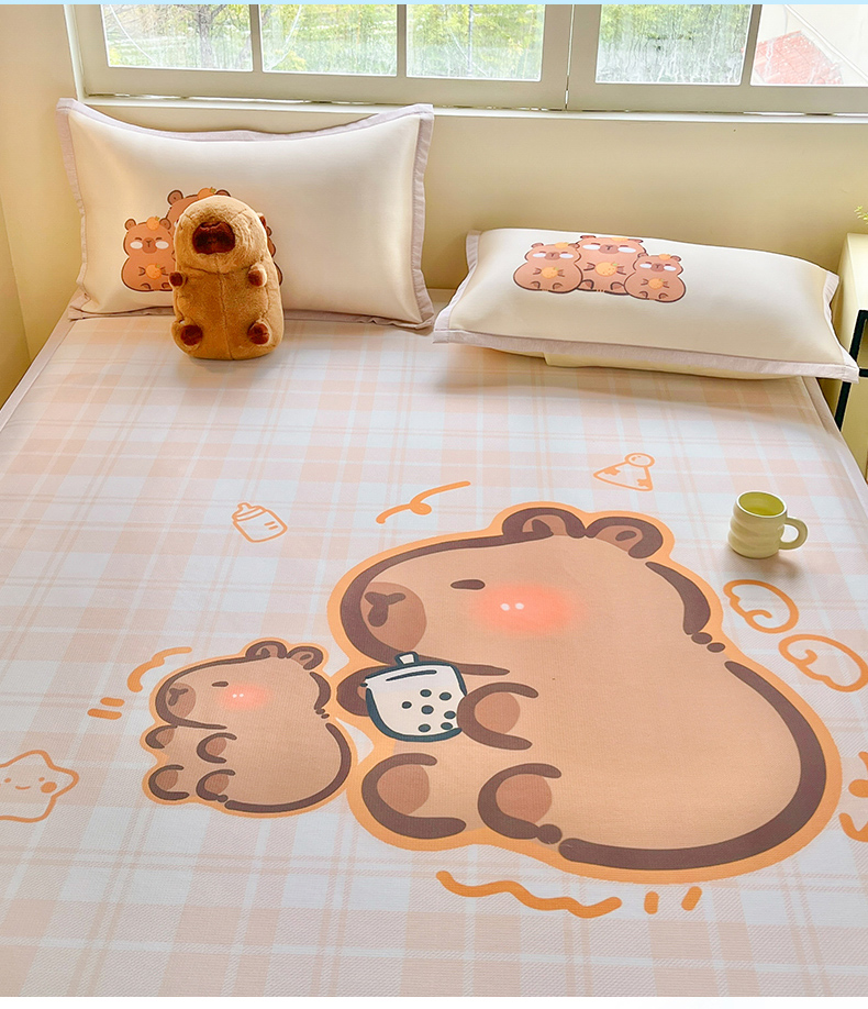 博雅 2025新款独家版权A类大版数码印花1200D冰丝凉席 可爱卡皮巴拉