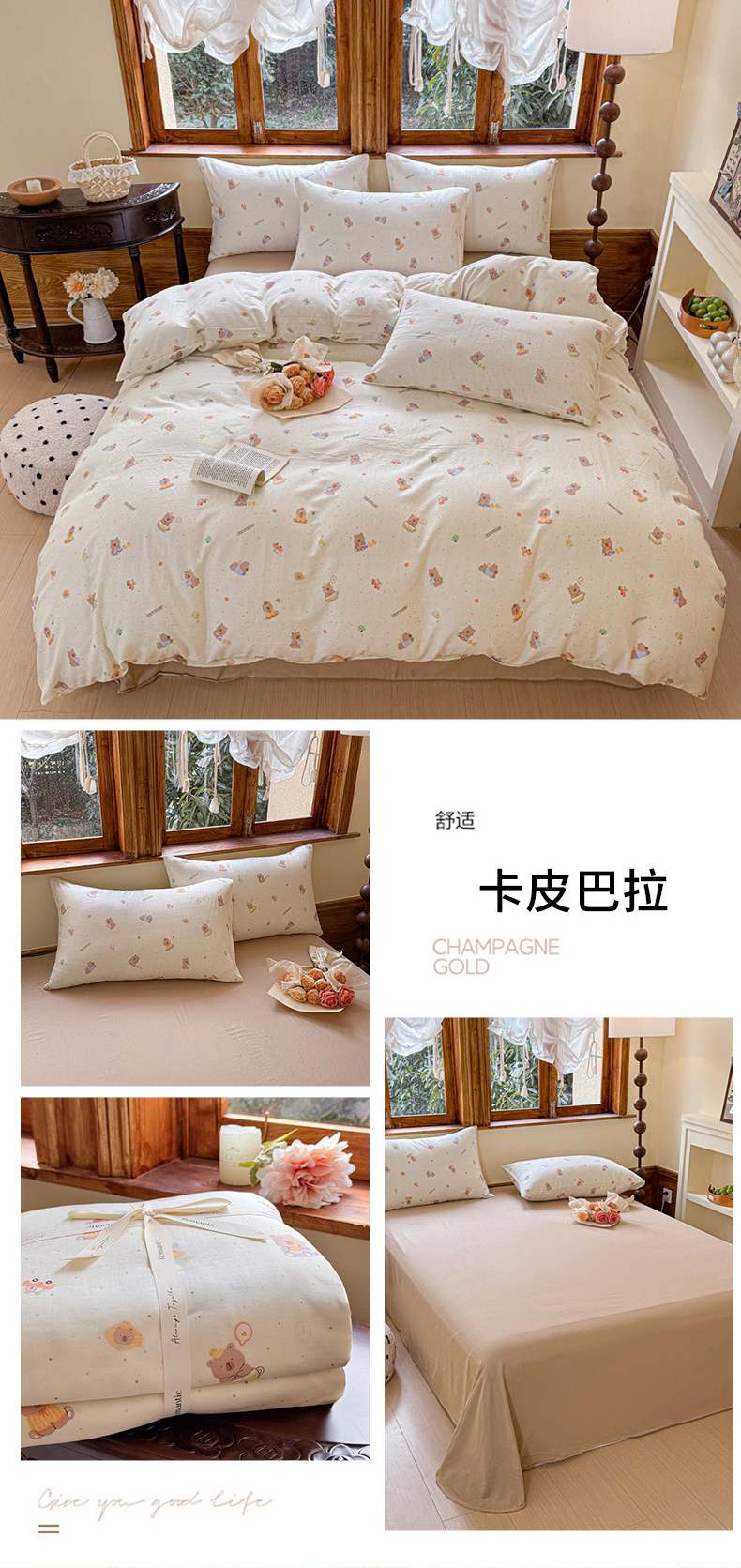 商品名称:雪夫人 2025新款A类全棉有氧双层纱四件套 卡皮巴拉