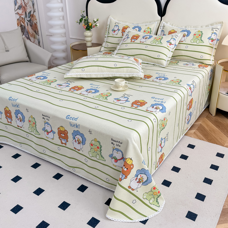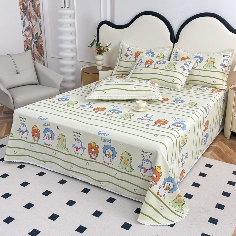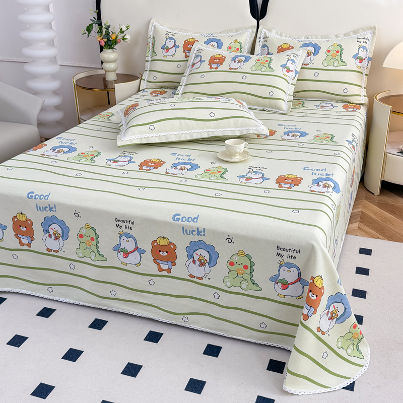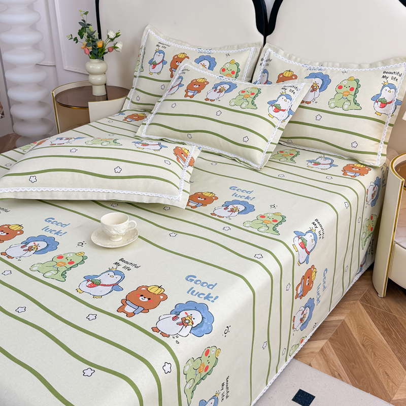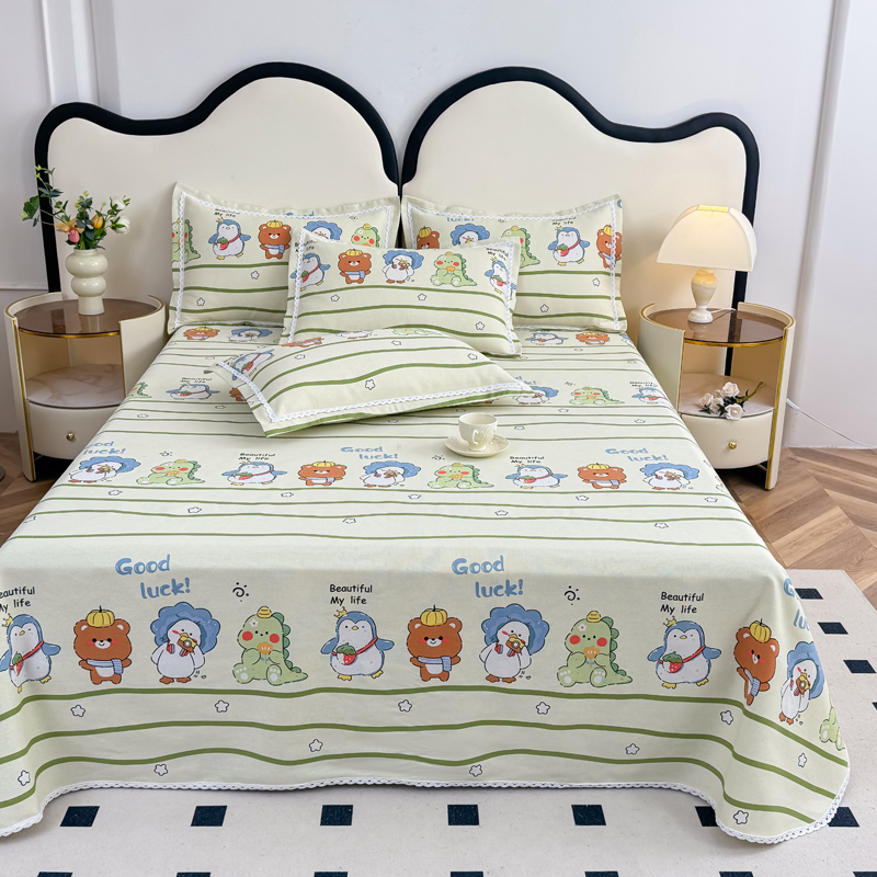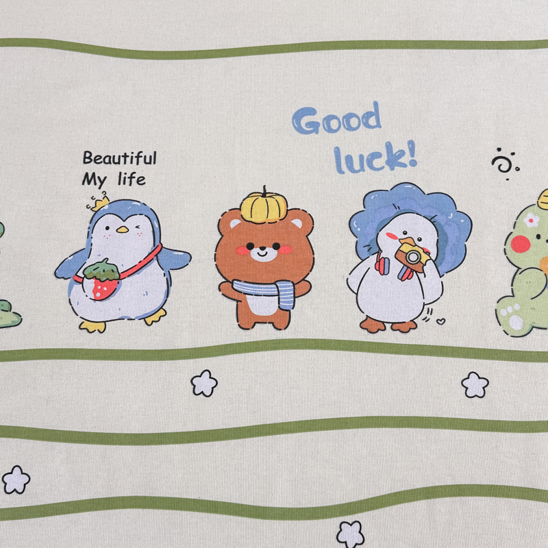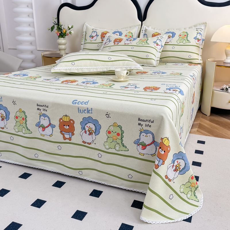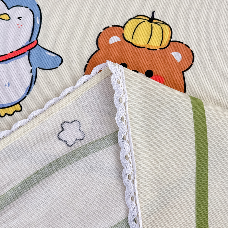 商品名称:仟网汇 2025全棉老粗布蕾丝花边三件套(无纺布手提包装) 动物园