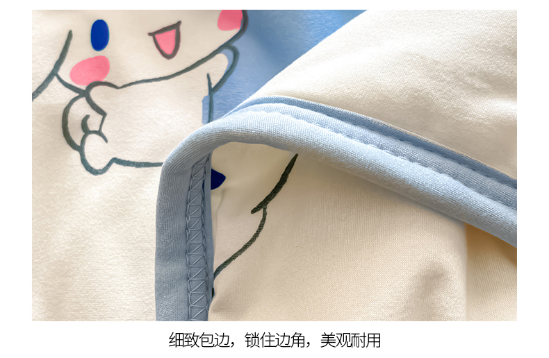 当前位置: 91家纺网 > 商品网购 > 被子 > 夏被 > 桃子家居 2025新款A类三丽鸥正版授权高品质牛奶丝软糯针织棉大豆夏被系列 针织棉三丽鸥-蓝蓝波点玉桂狗