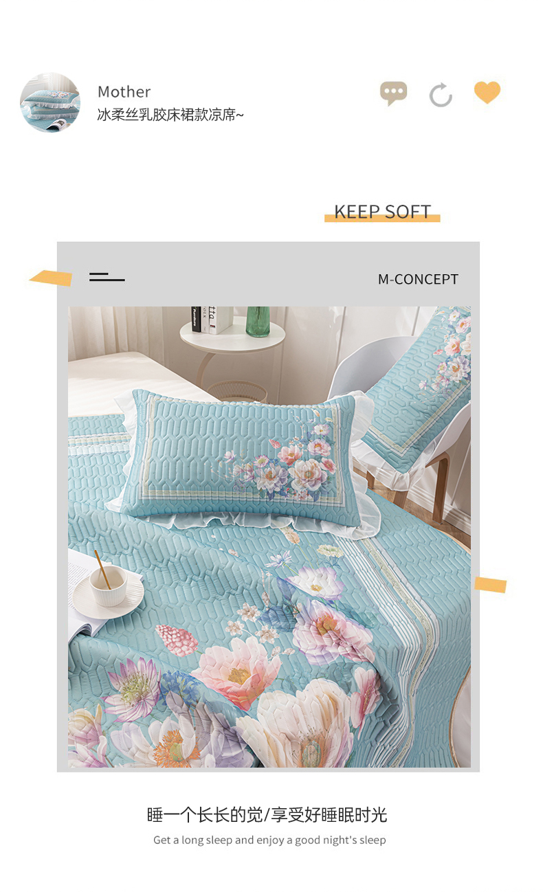 当前位置: 91家纺网 > 商品网购 > 床上用品 > 凉席 > 凉席套件 > 美丽折2025新品6mm厚天然乳胶凉席三件套 大版印花卡通乳胶凉席平铺款 叶韵