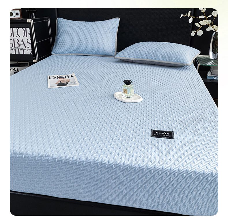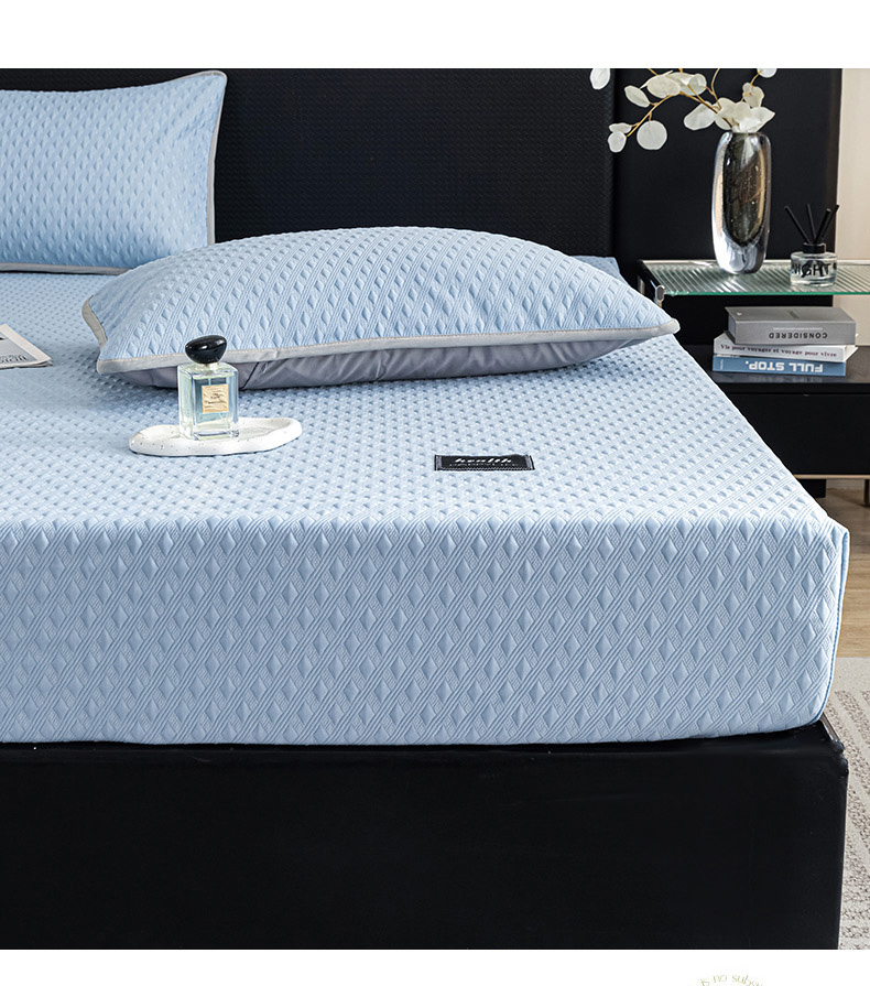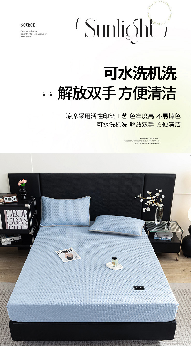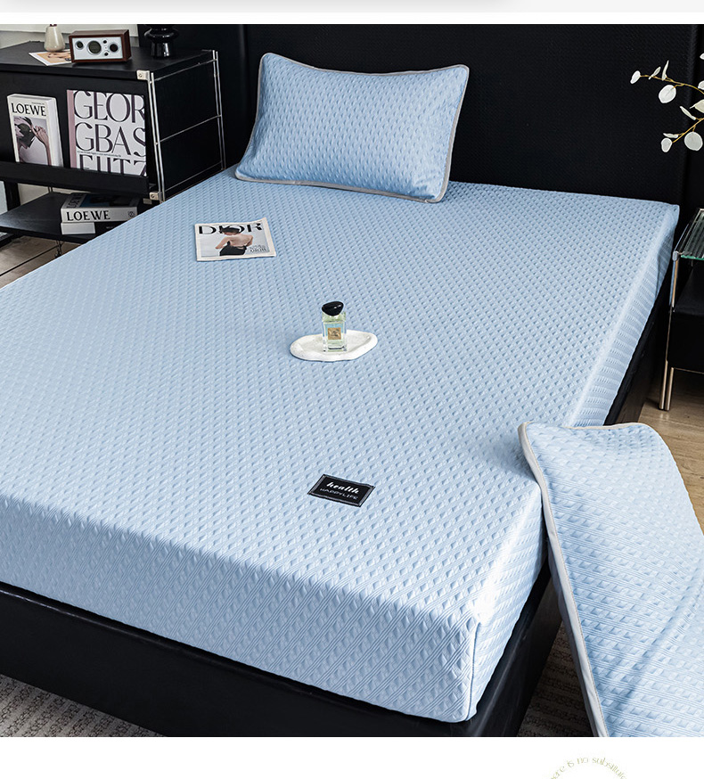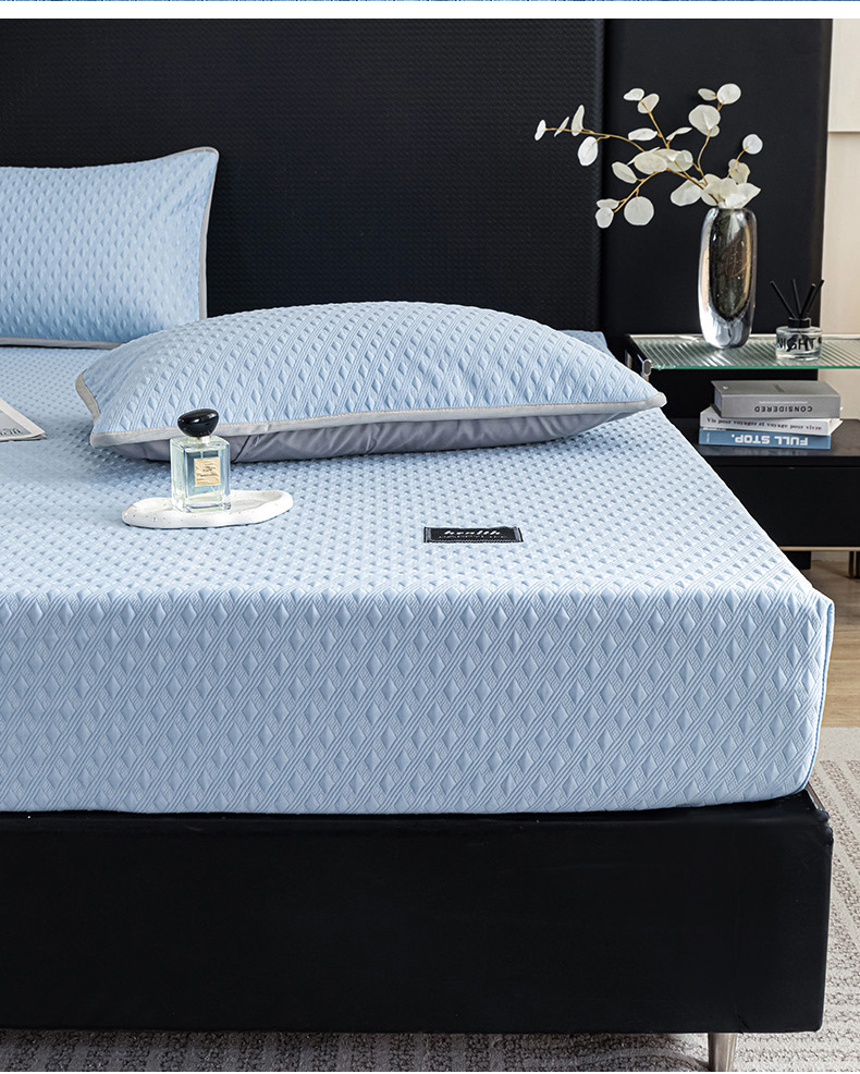 • 91家纺网 家纺一手货源 找家纺 倾慕家纺 2025新款PE大泡泡凉感床笠款凉席 菱形泡蓝