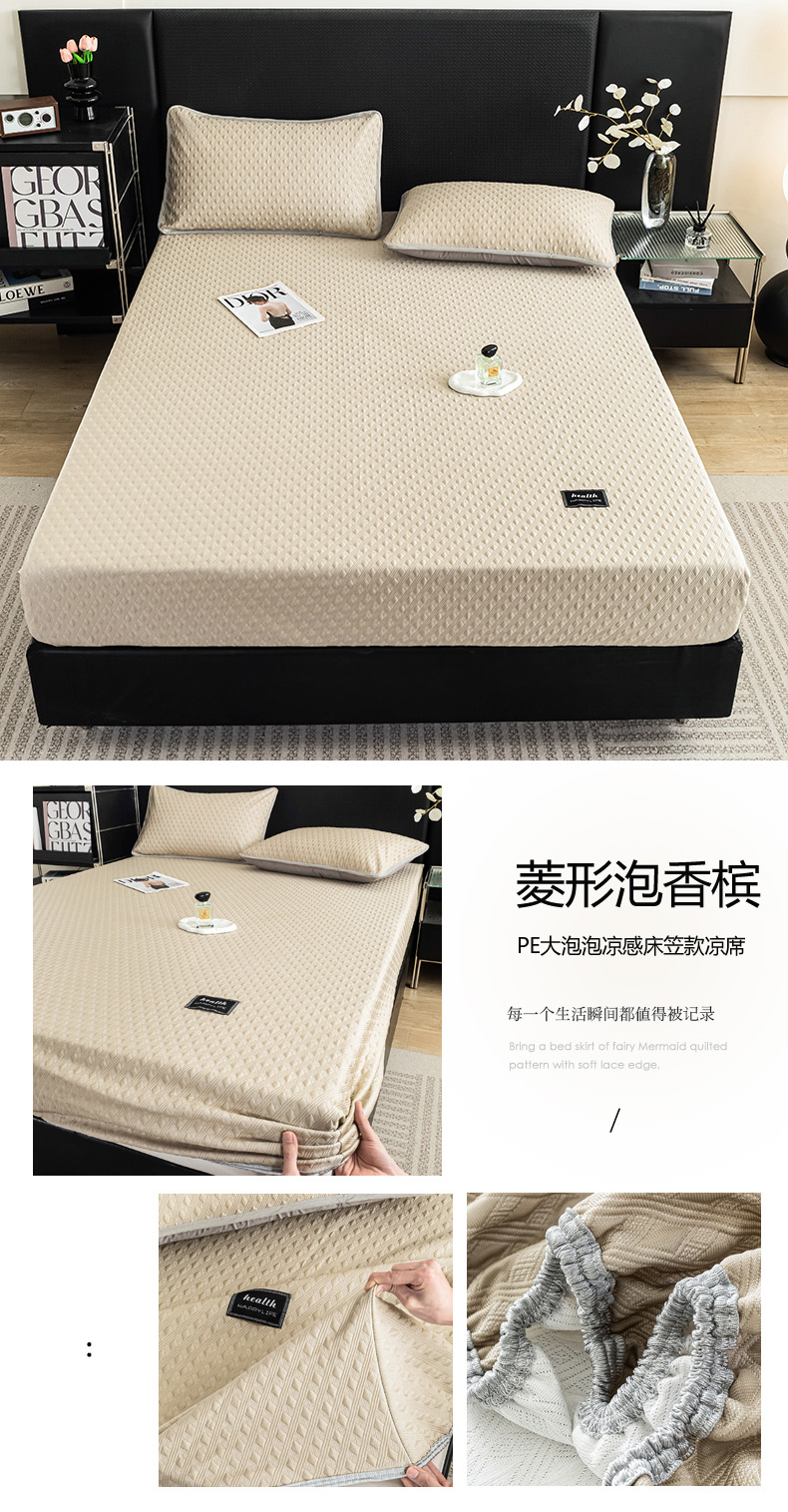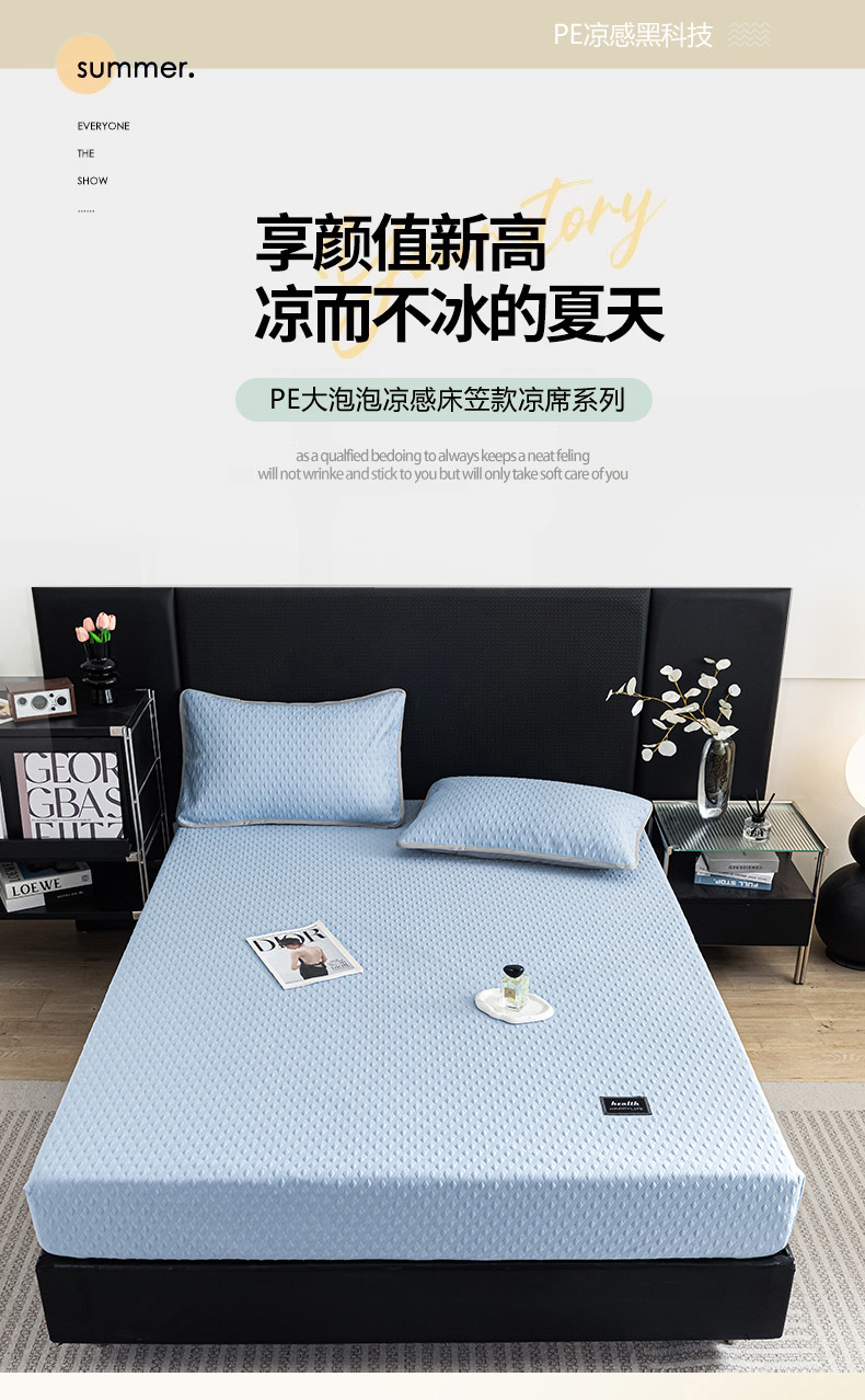 倾慕家纺 2025新款PE大泡泡凉感床笠款凉席 菱形泡蓝