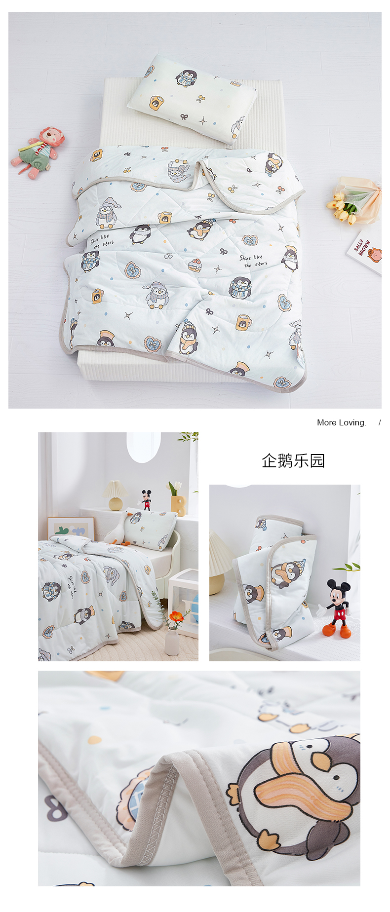 商品名称:丝涟家居 2025新款A类卡通小清新双面印花凉感丝夏被企鹅乐园