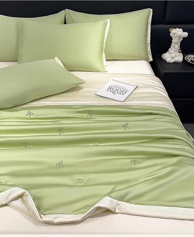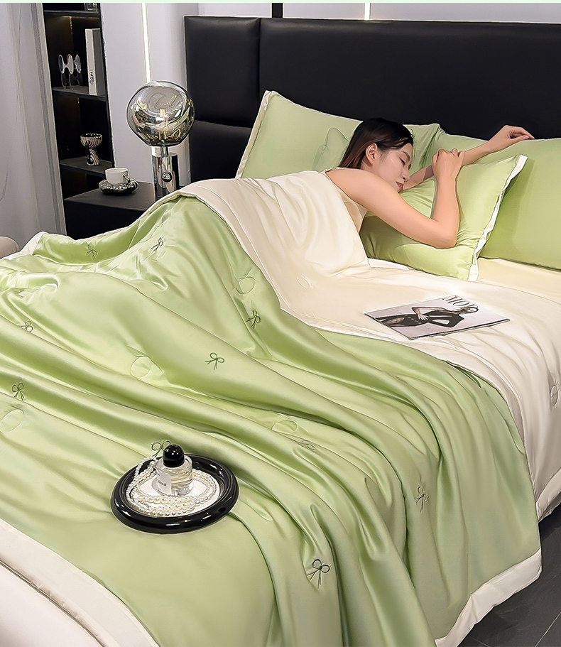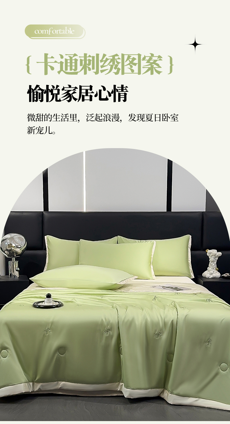 2025新款清凉舒适水洗冰丝刺绣夏被四件套 蝴蝶結-青频绿
