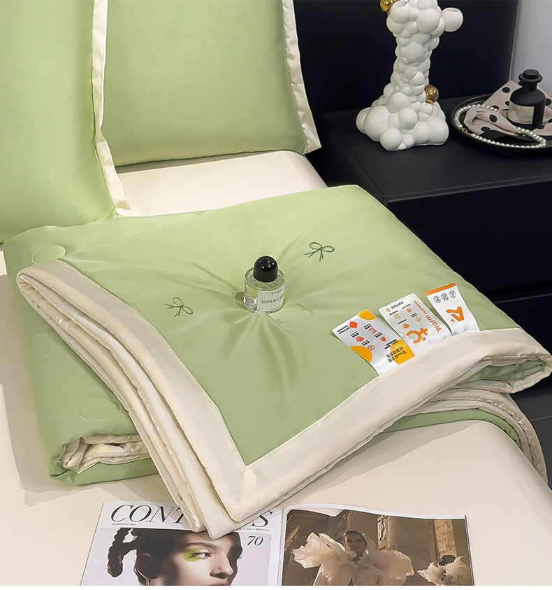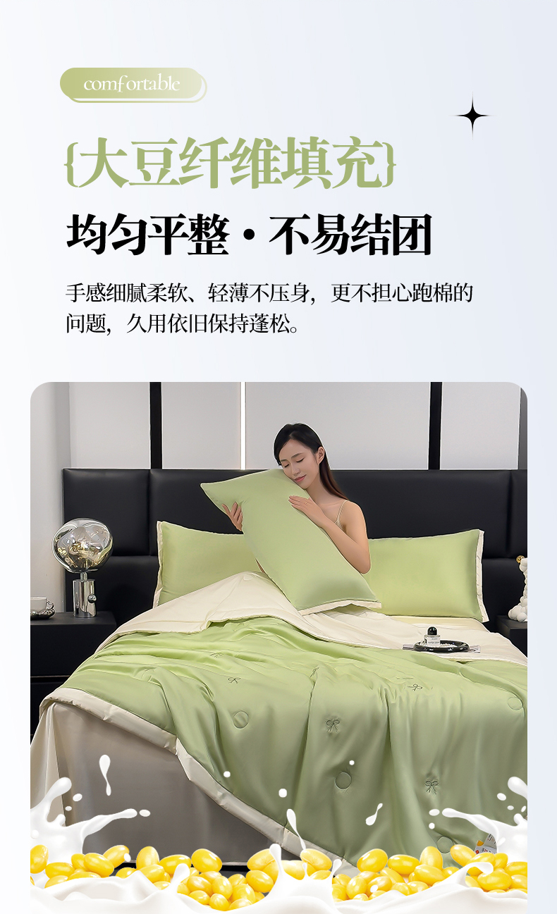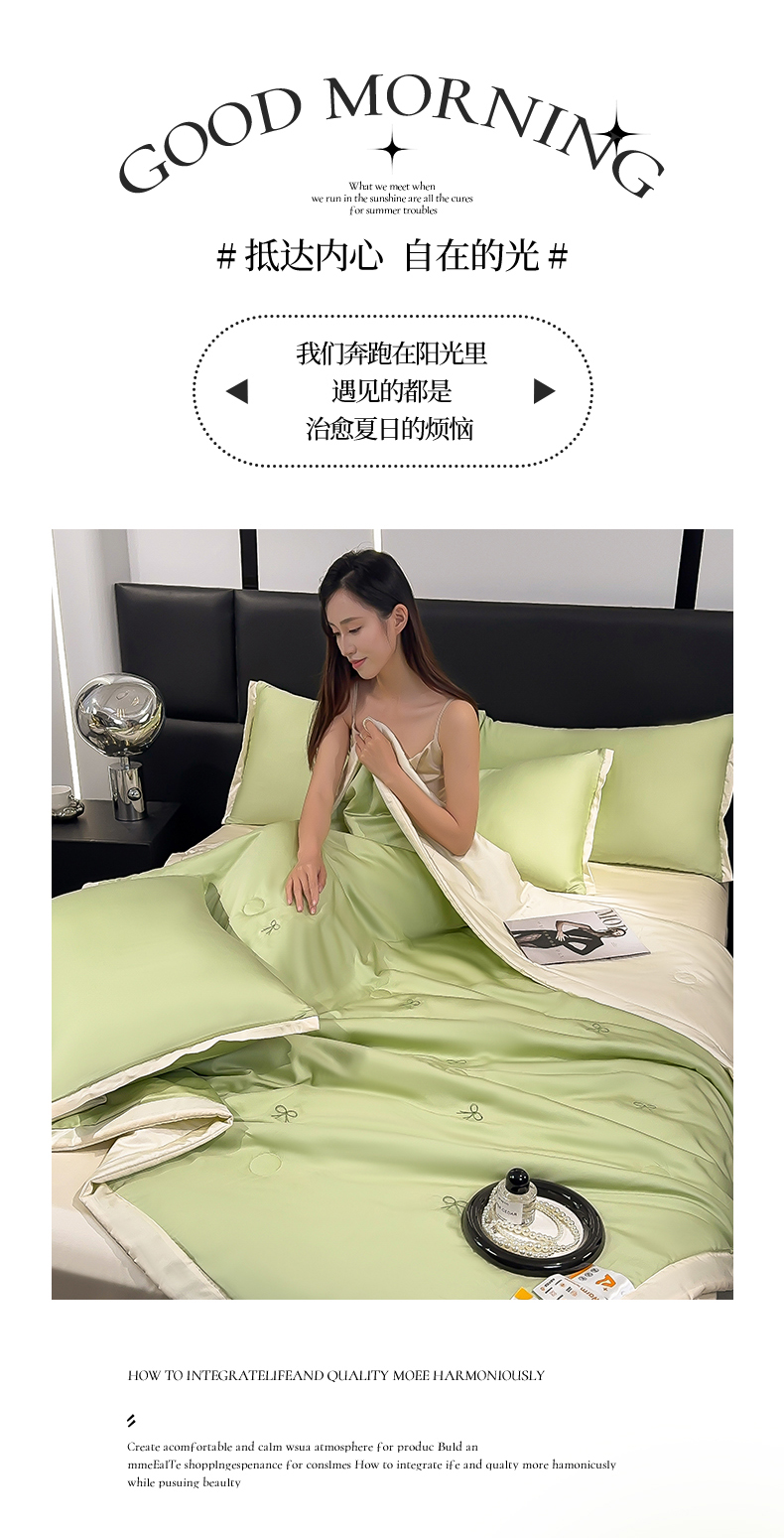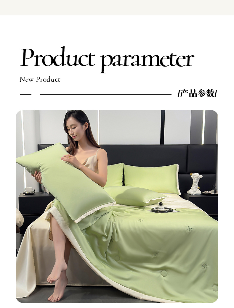 商品名称:2025新款清凉舒适水洗冰丝刺绣夏被四件套 蝴蝶結-青频绿