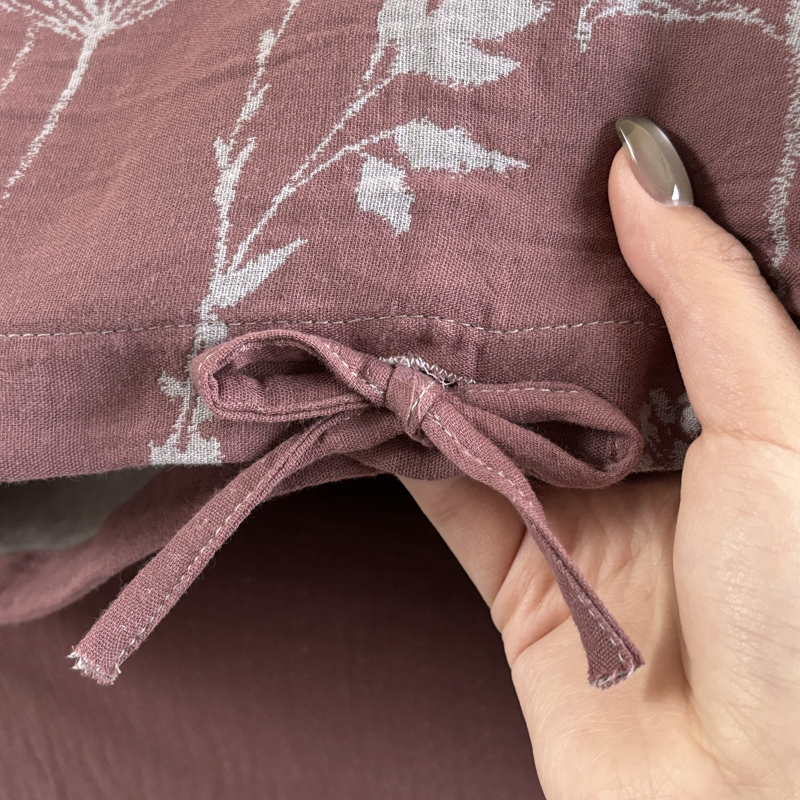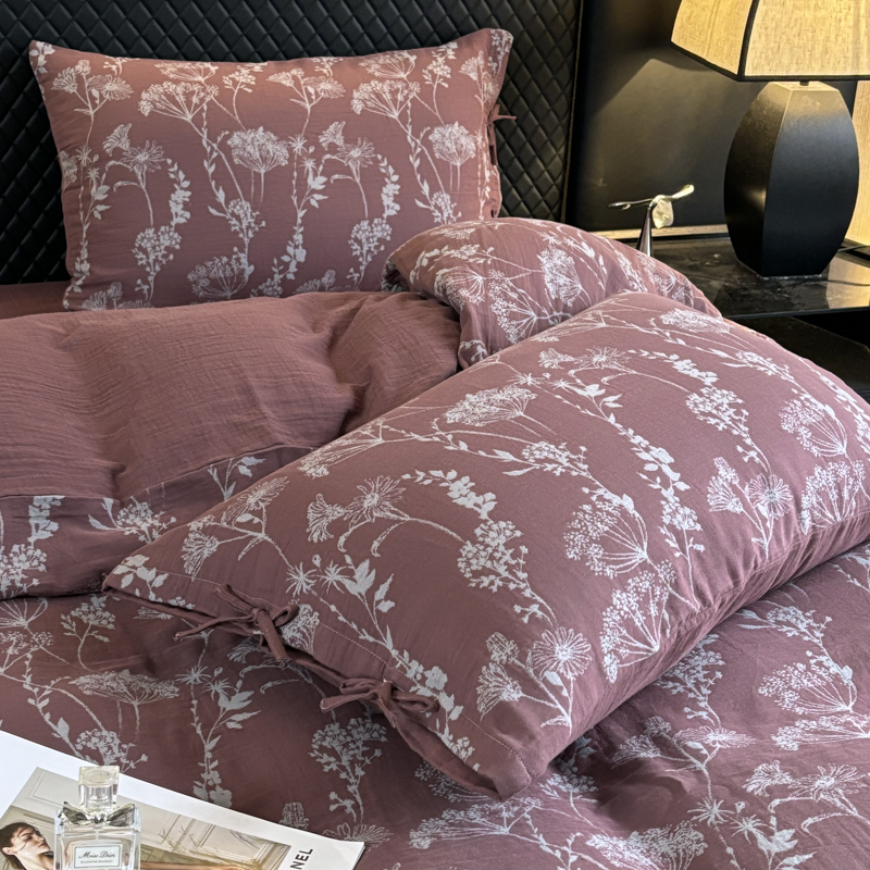 商品名称:鲁爱家纺供货 2025新款全棉色织双层纱系带款四件套 云影-豆沙