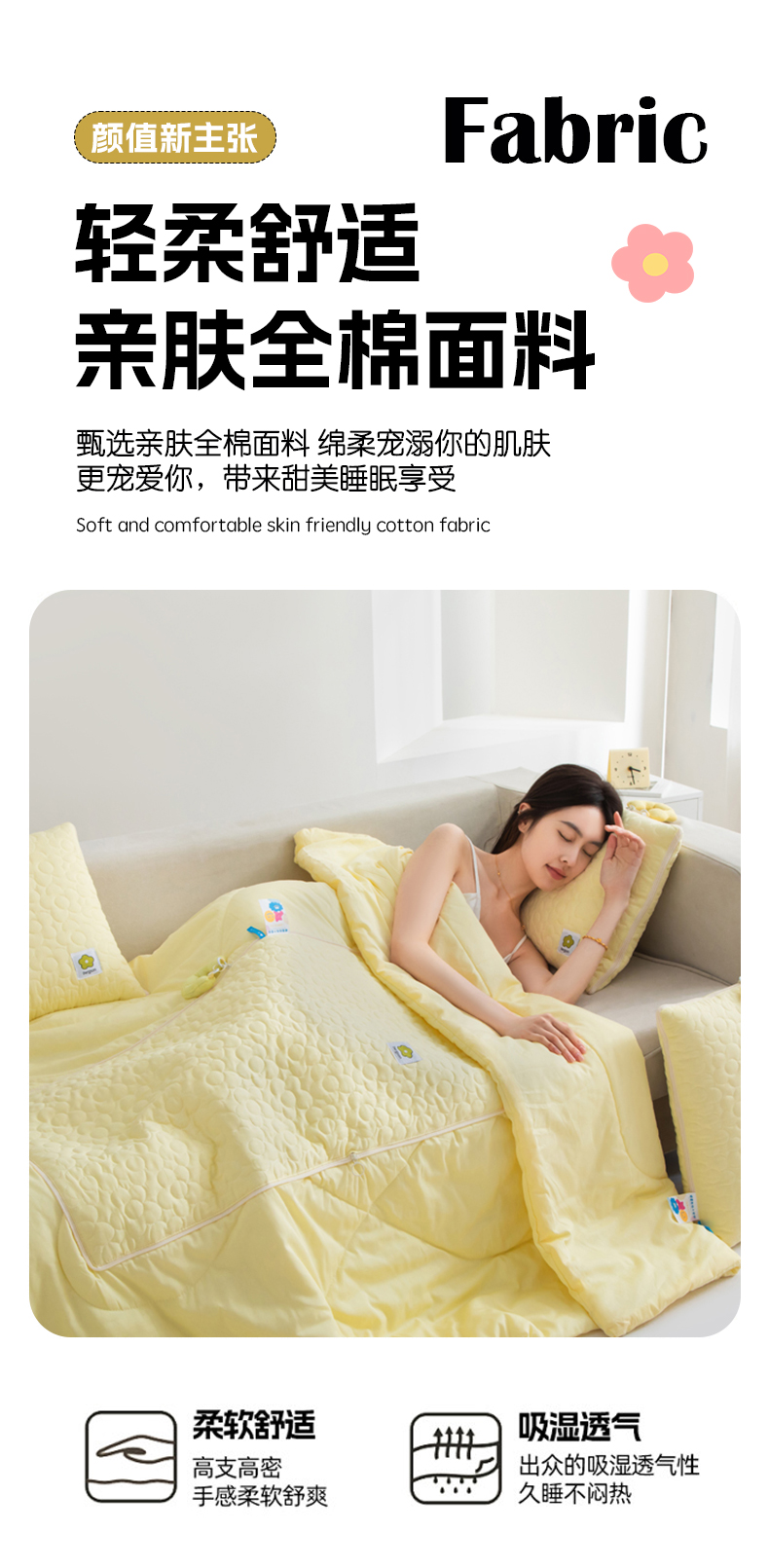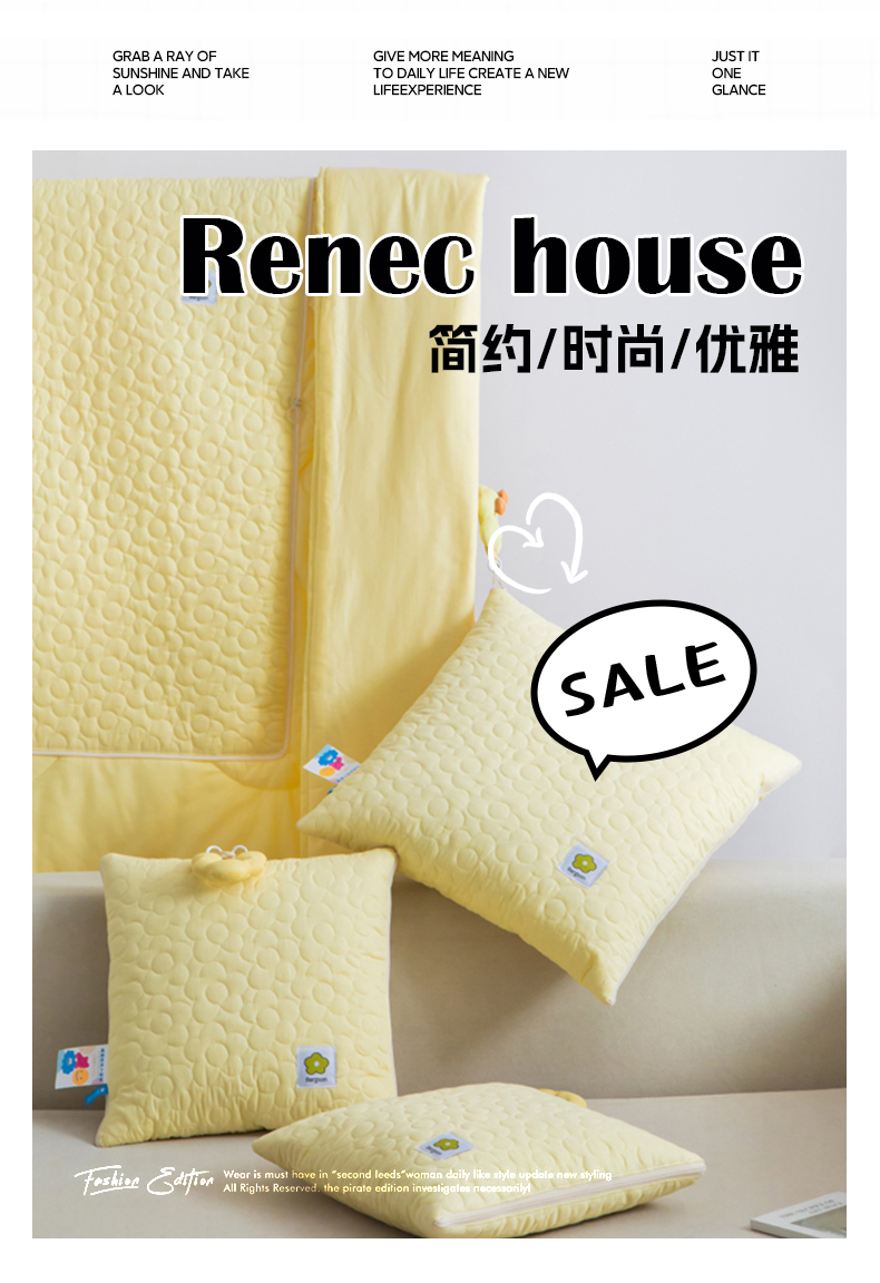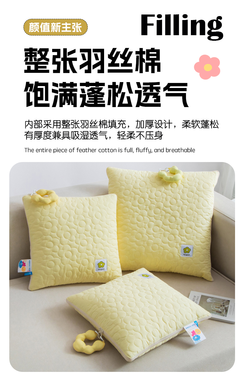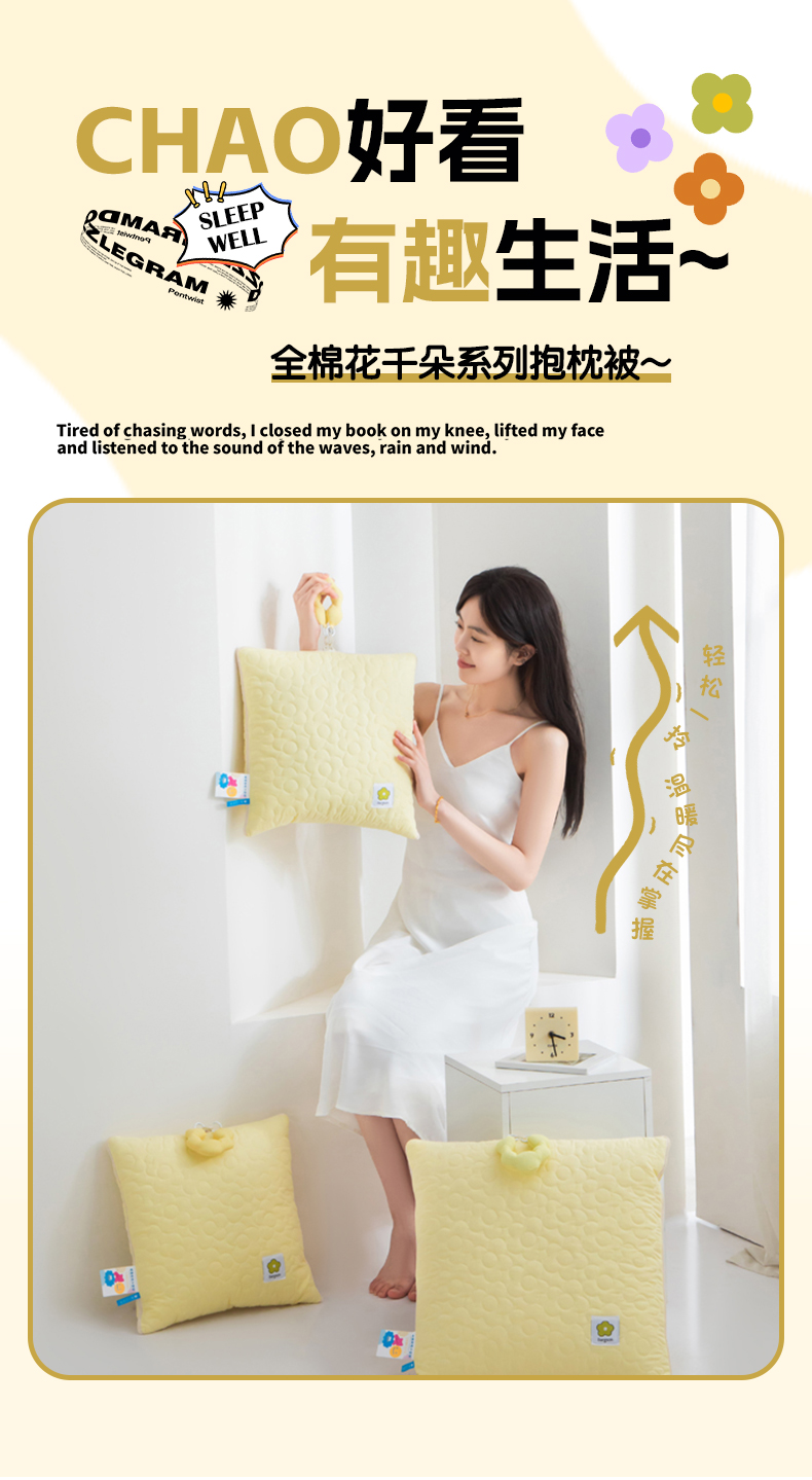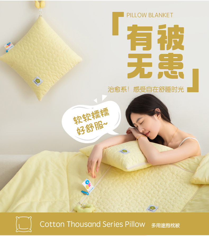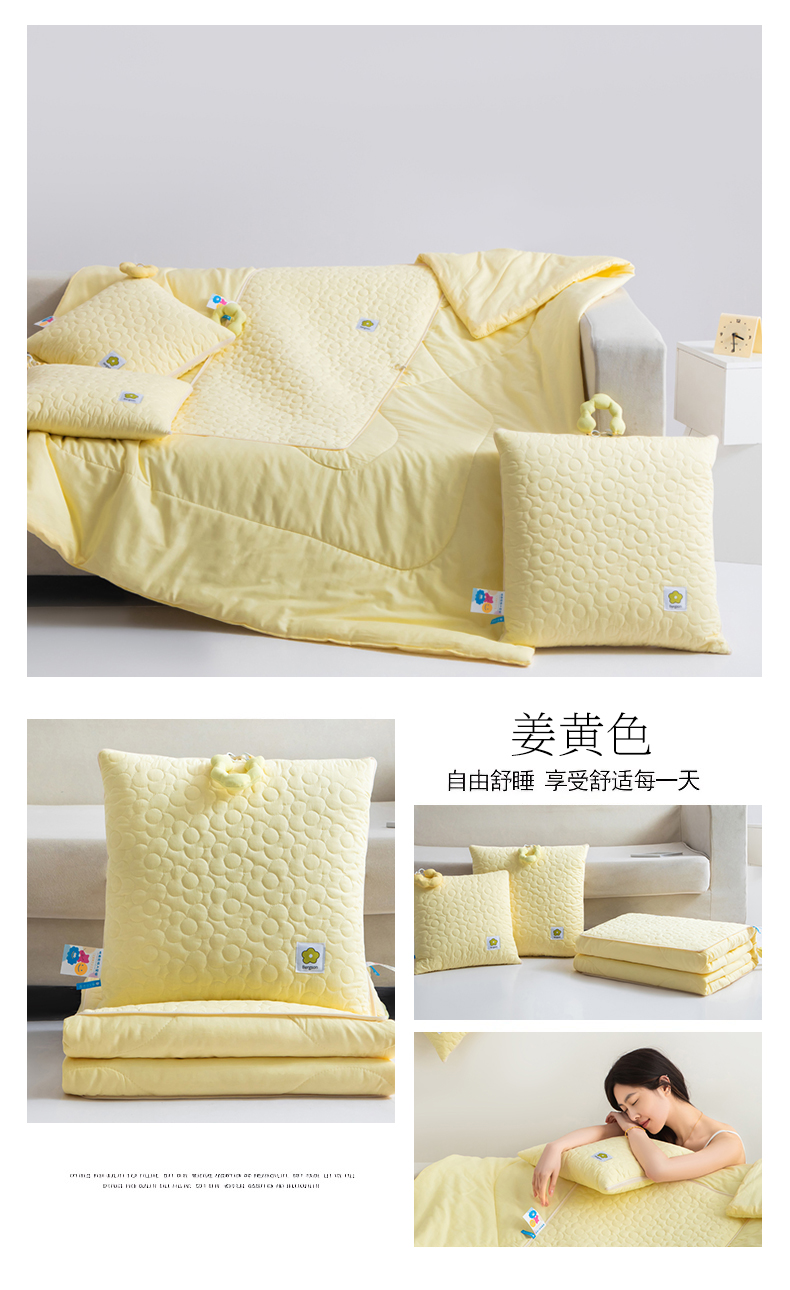 商品名称:雷娜家居 2025新款全棉花千朵系列抱枕被 姜黄色