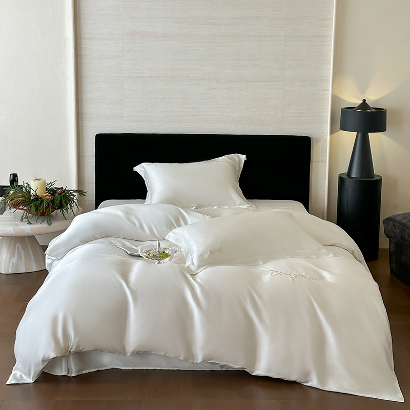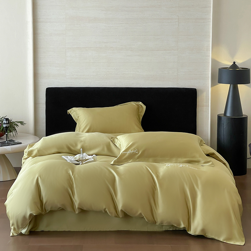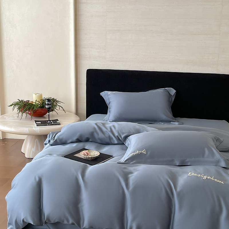 黛舒家居 2025新款60S兰精天丝纯色简绣四件套 石青