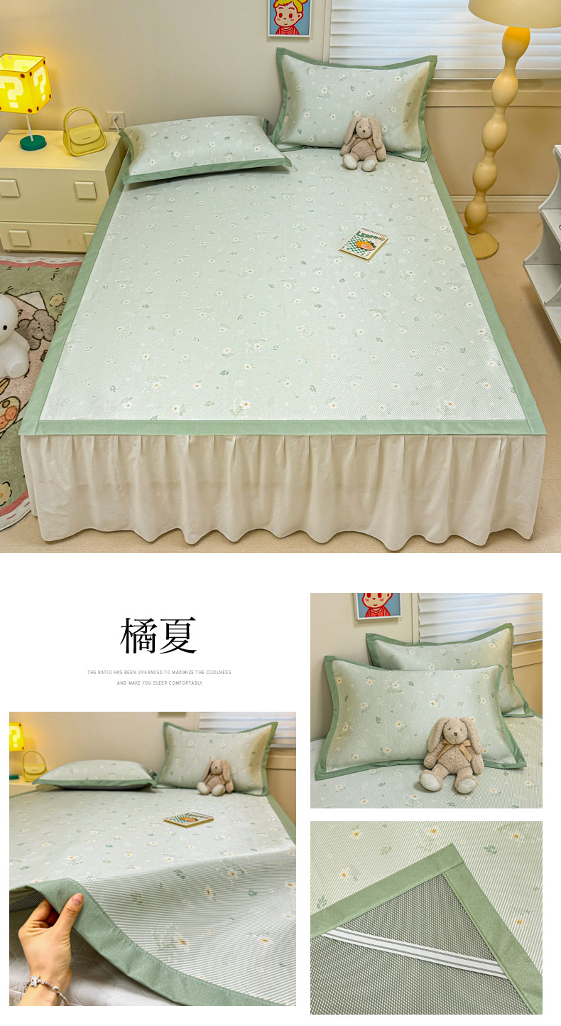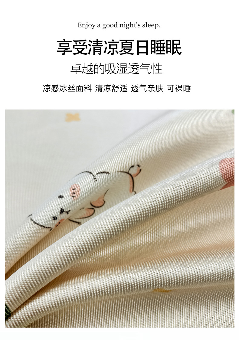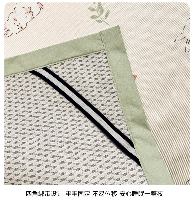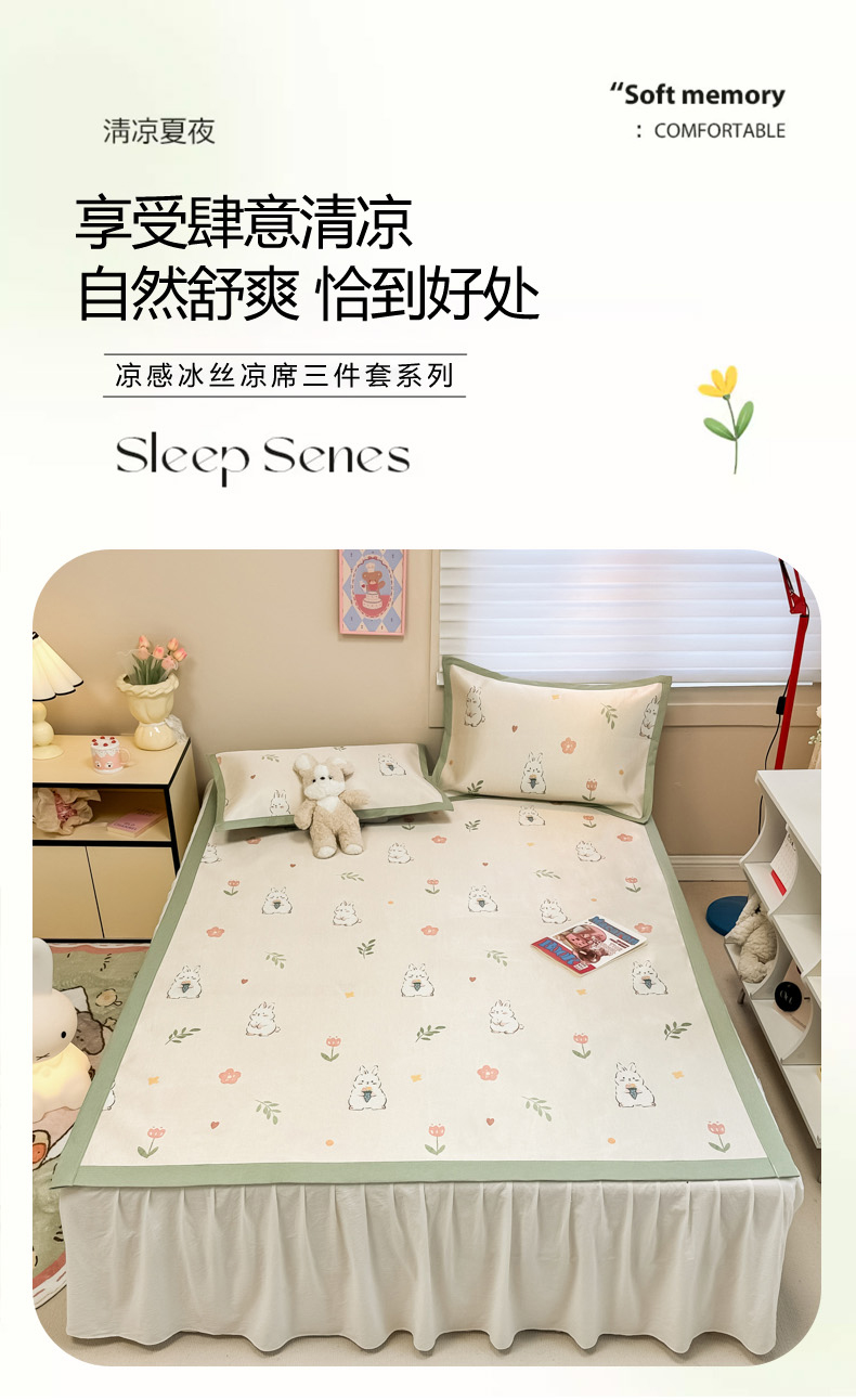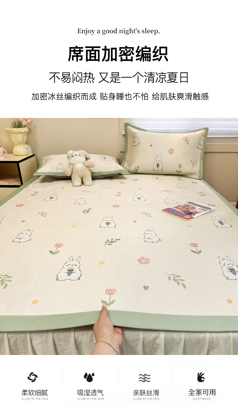 慕尚家纺 2025新款600D小清新凉感冰丝凉席三件套 可爱小兔