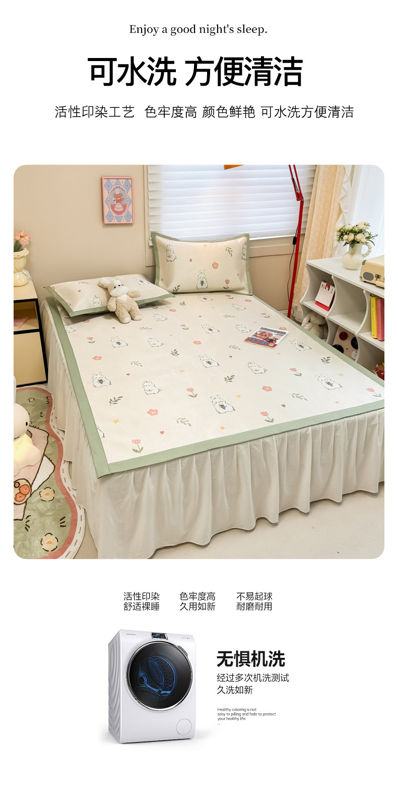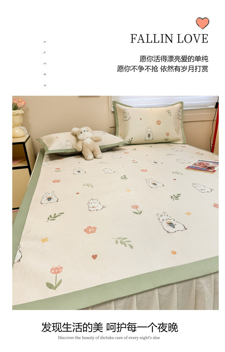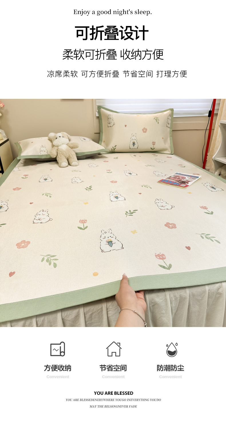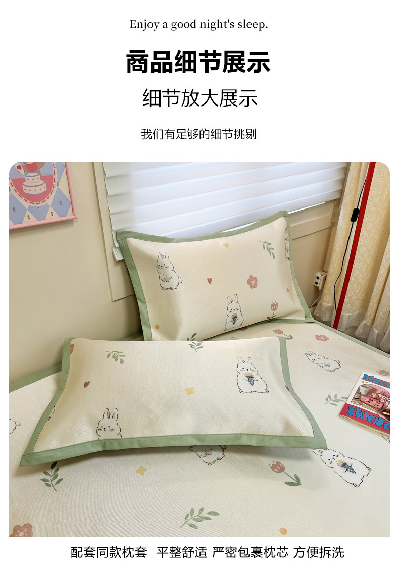 商品名称:慕尚家纺 2025新款600D小清新凉感冰丝凉席三件套 可爱小兔