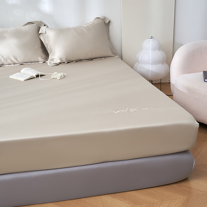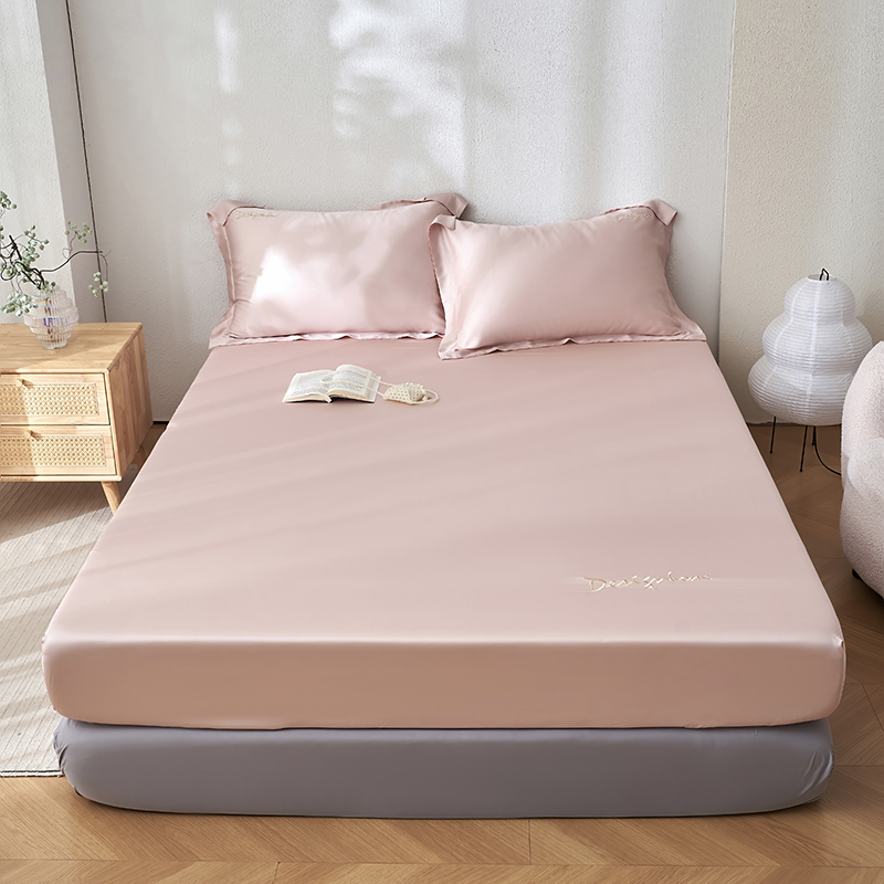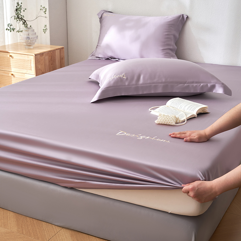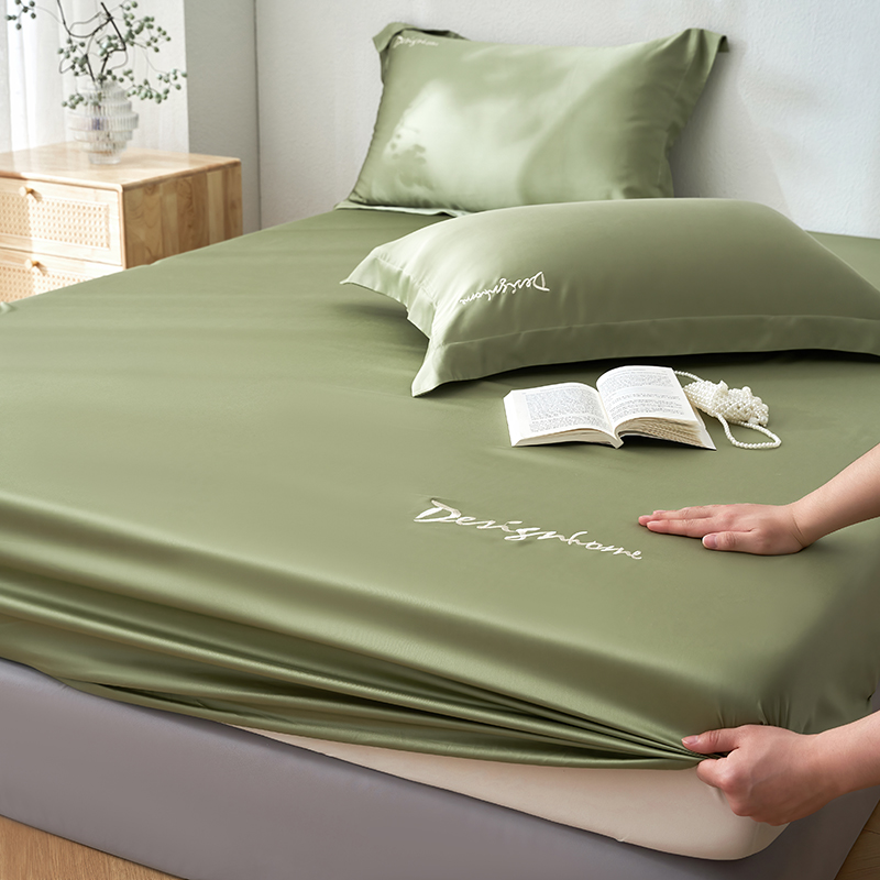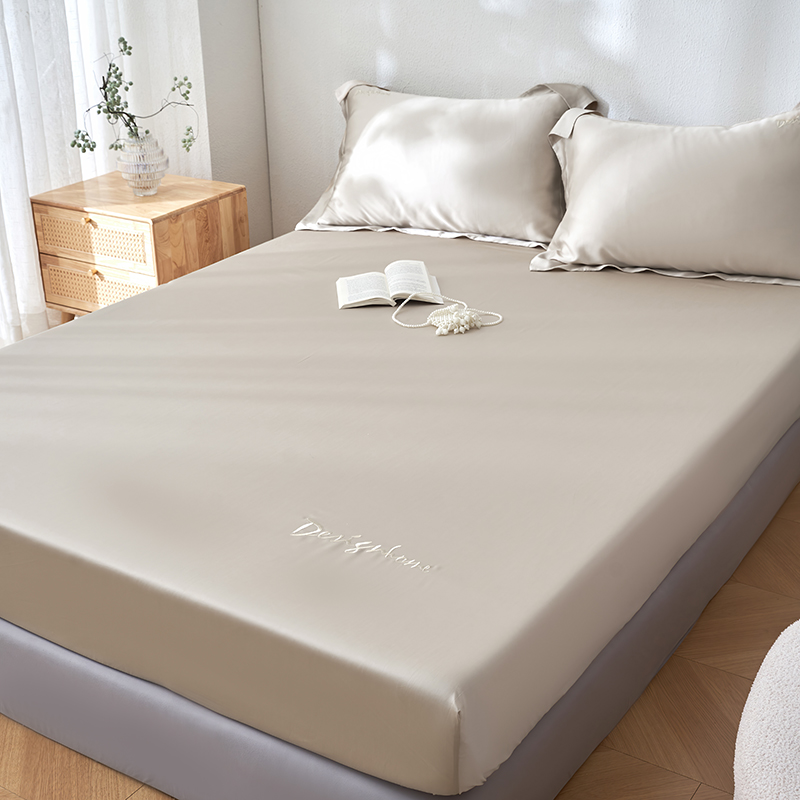 黛舒家居 2025新款60S兰精天丝纯色简绣单床笠 石青