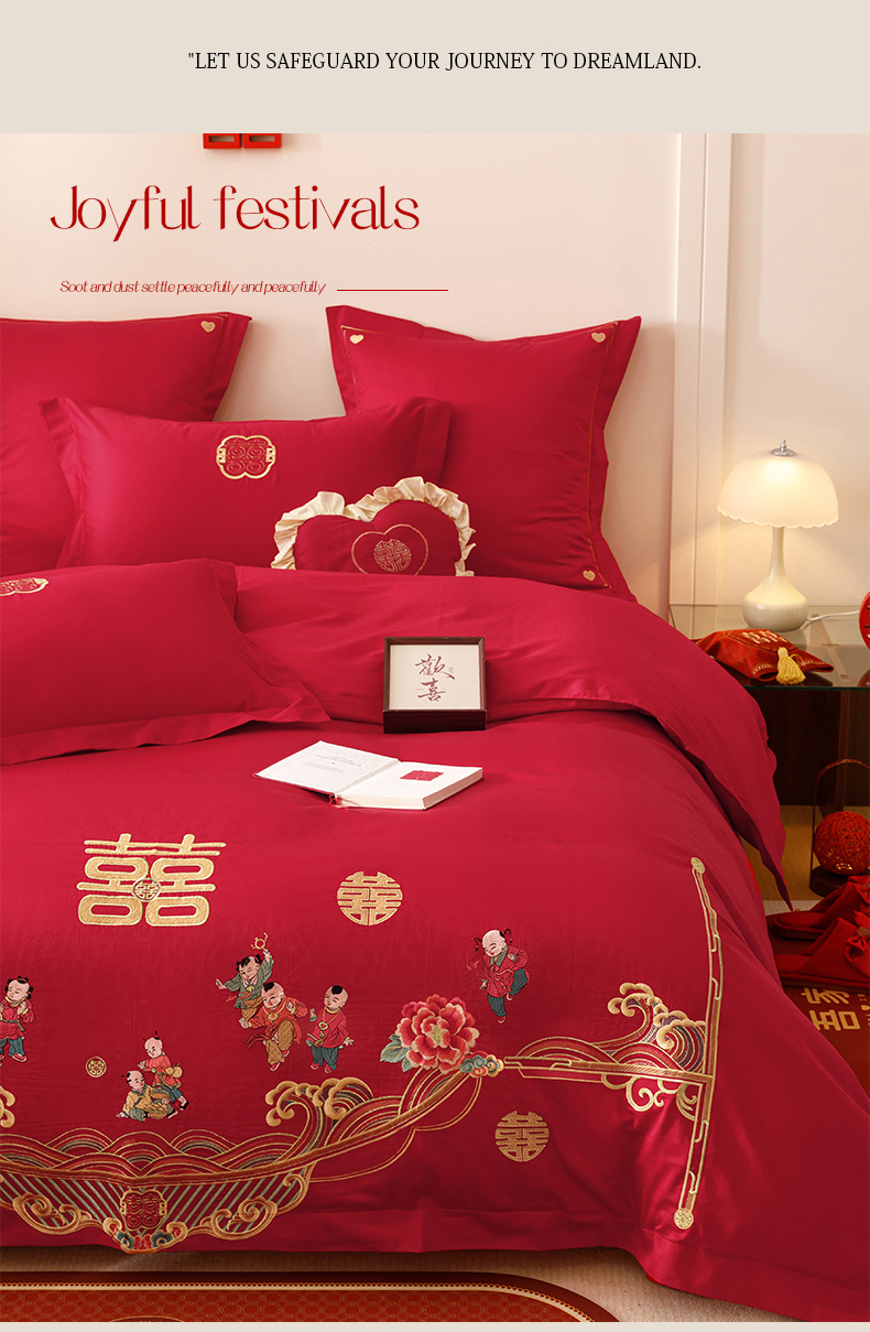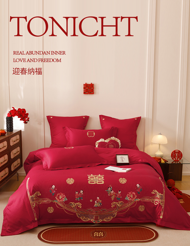 当前位置: 91家纺网 > 商品网购 > 床品套件 > 四件套 > 婚庆四件套 > 东方合美(原:皇家传奇) 2025婚庆小红书纯棉系列 迎春纳福