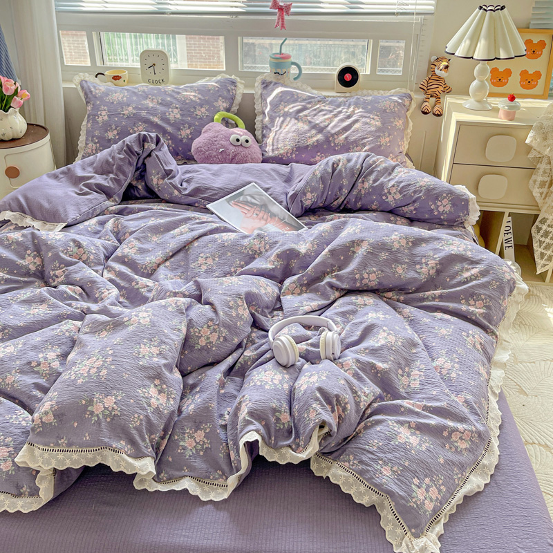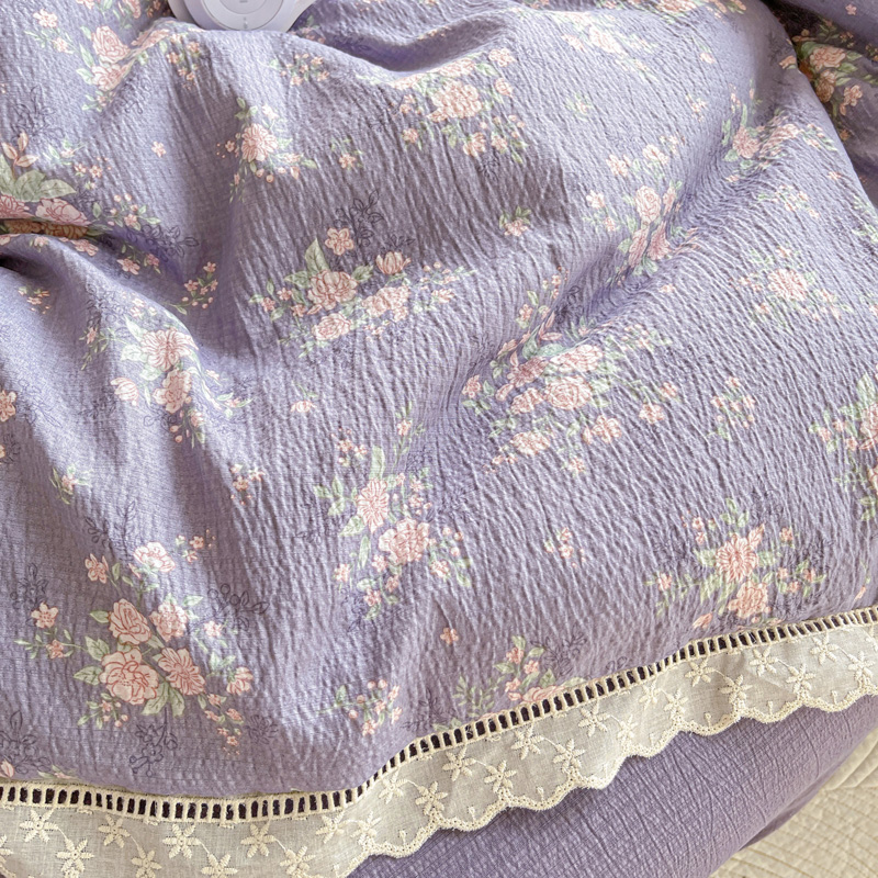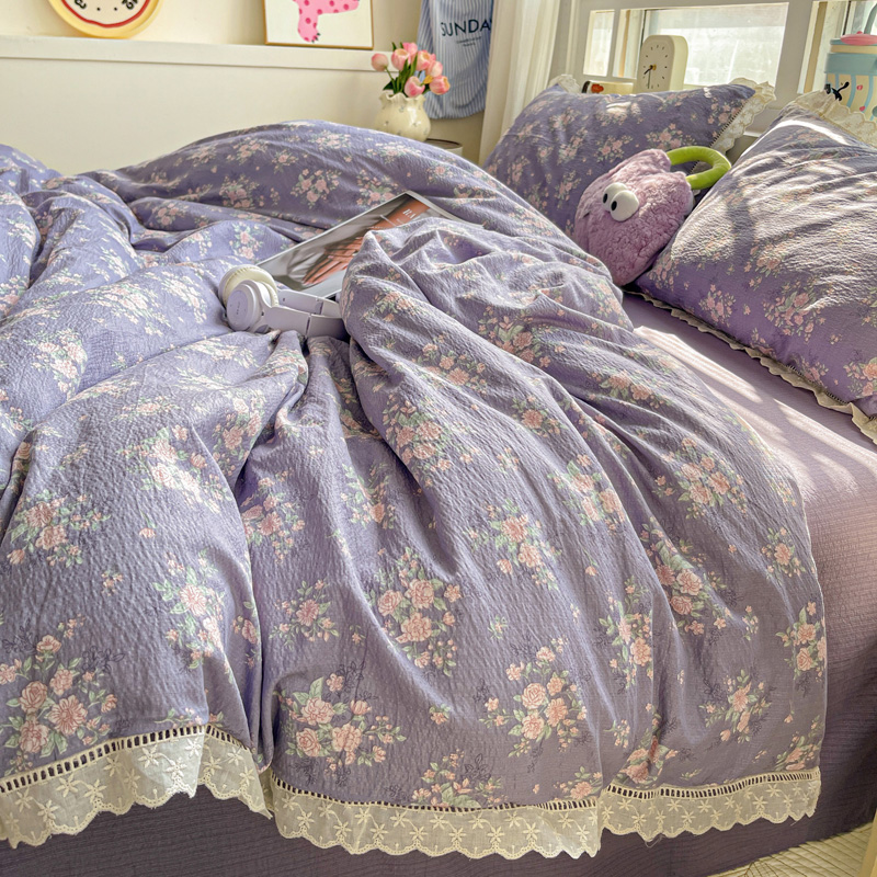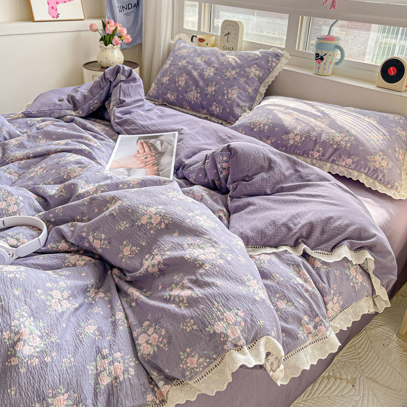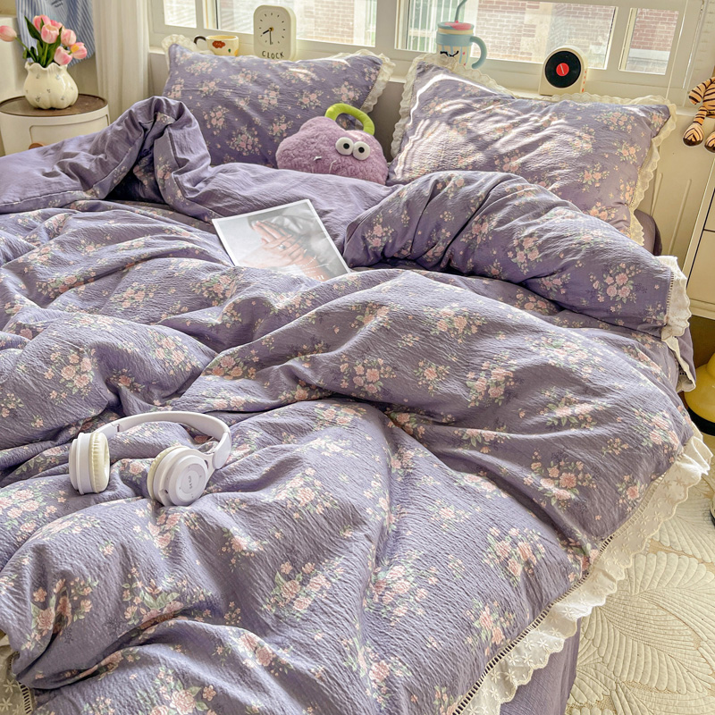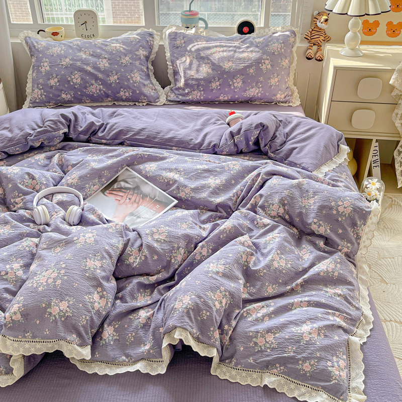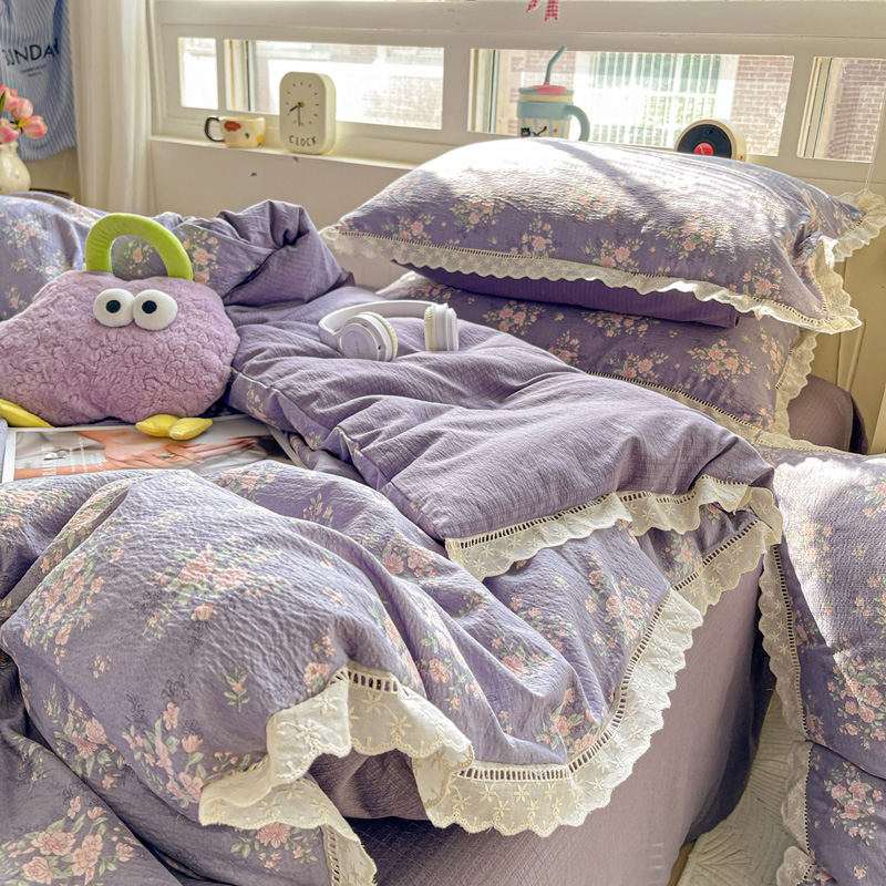 仟网汇 2025新款云感皱皱双层纱全棉花边四件套 豆蔻