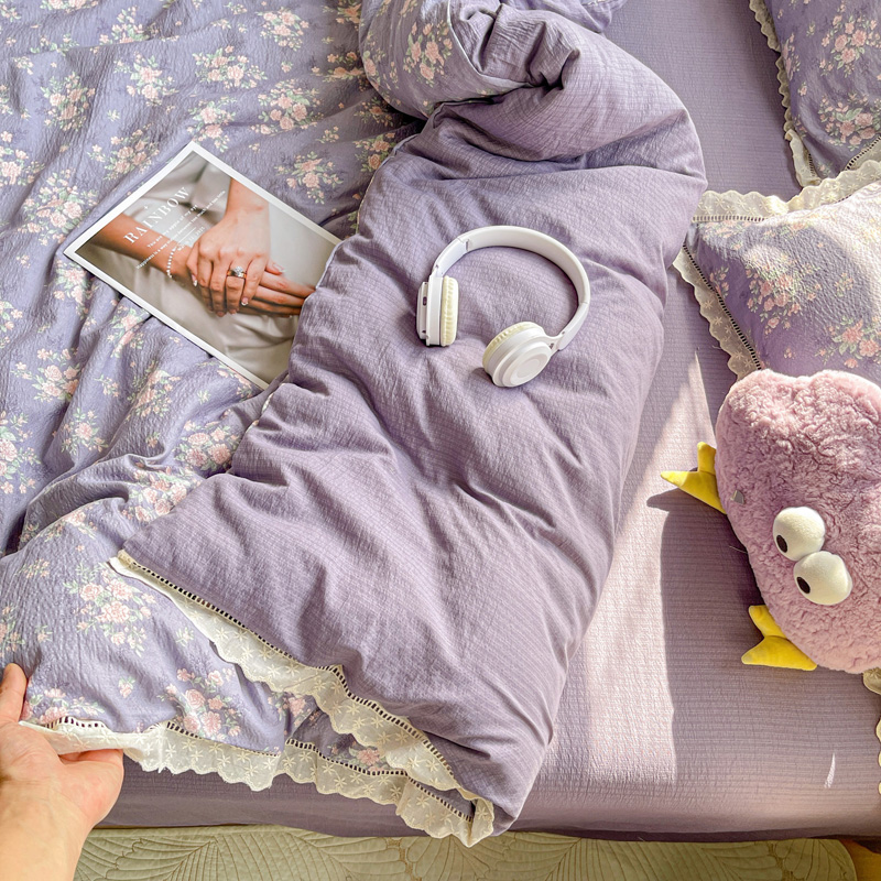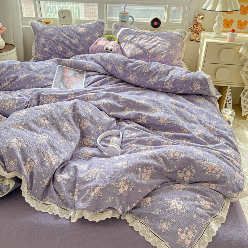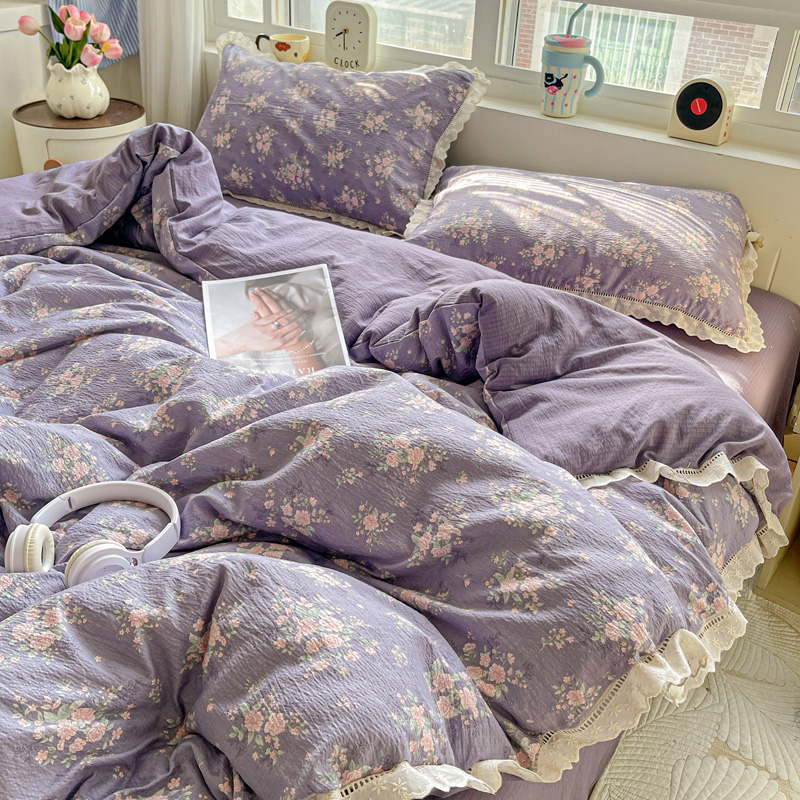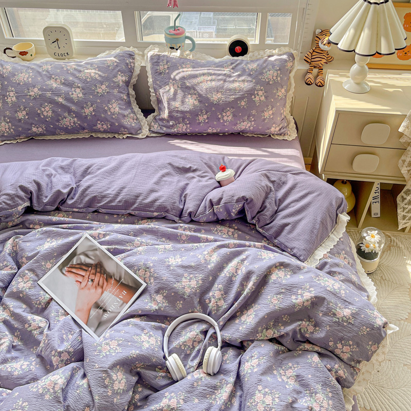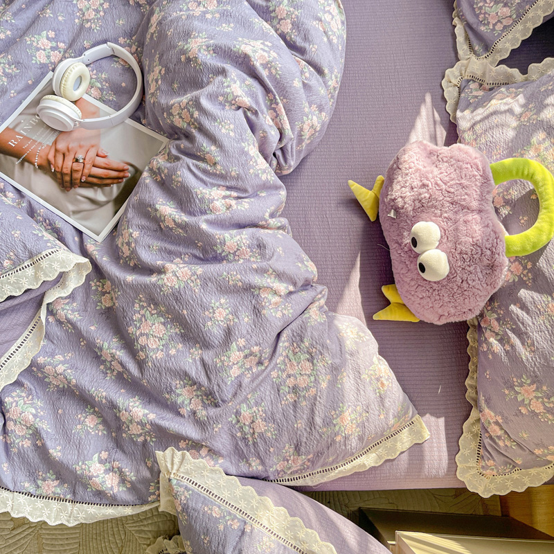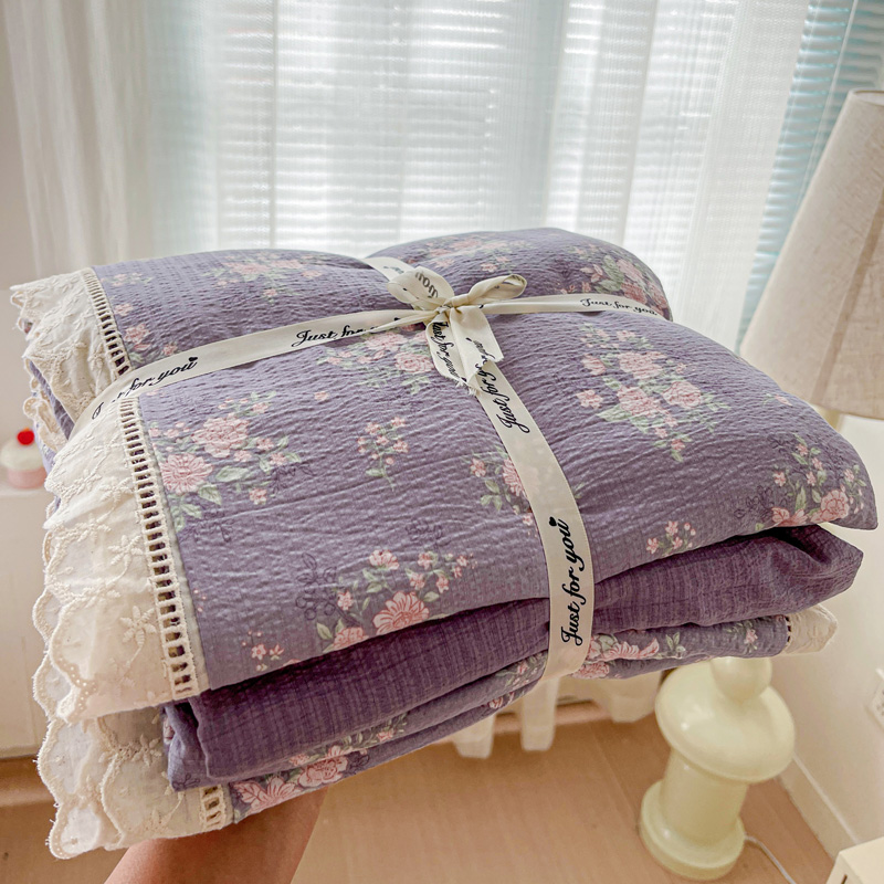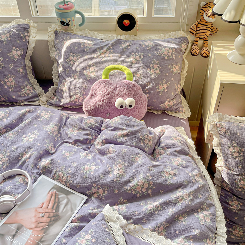 仟网汇 2025新款云感皱皱双层纱全棉花边四件套 豆蔻