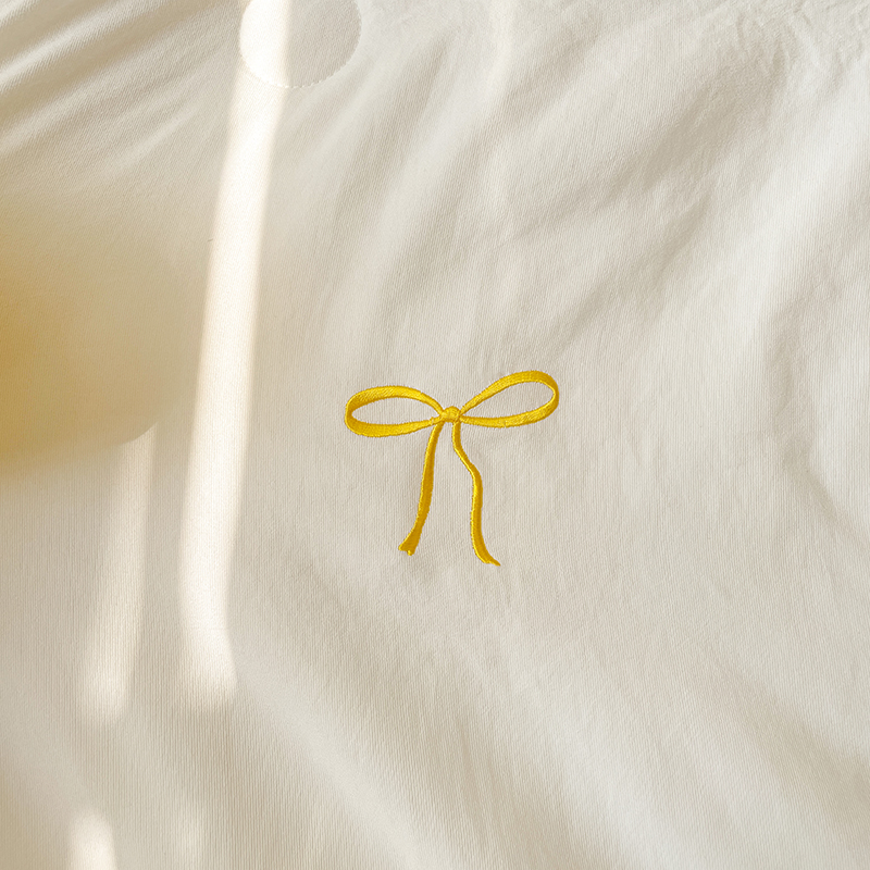 商品名称:2025新款绣花双层纱针织棉夏被床盖四件套全棉夏被四件套 蝴蝶结黄