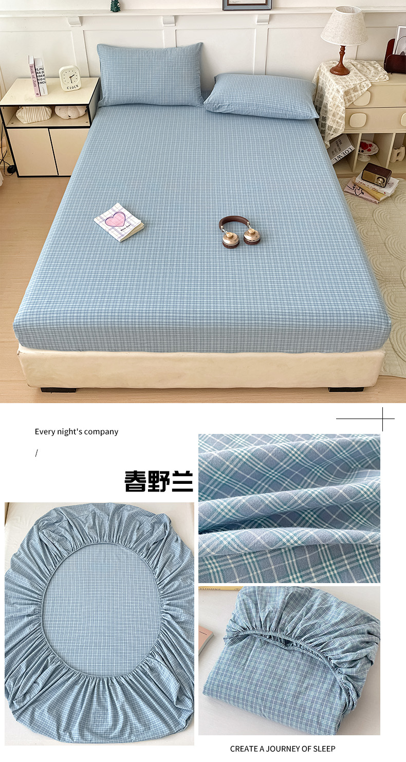 2025新款全棉水洗棉套件-单床笠 春野兰