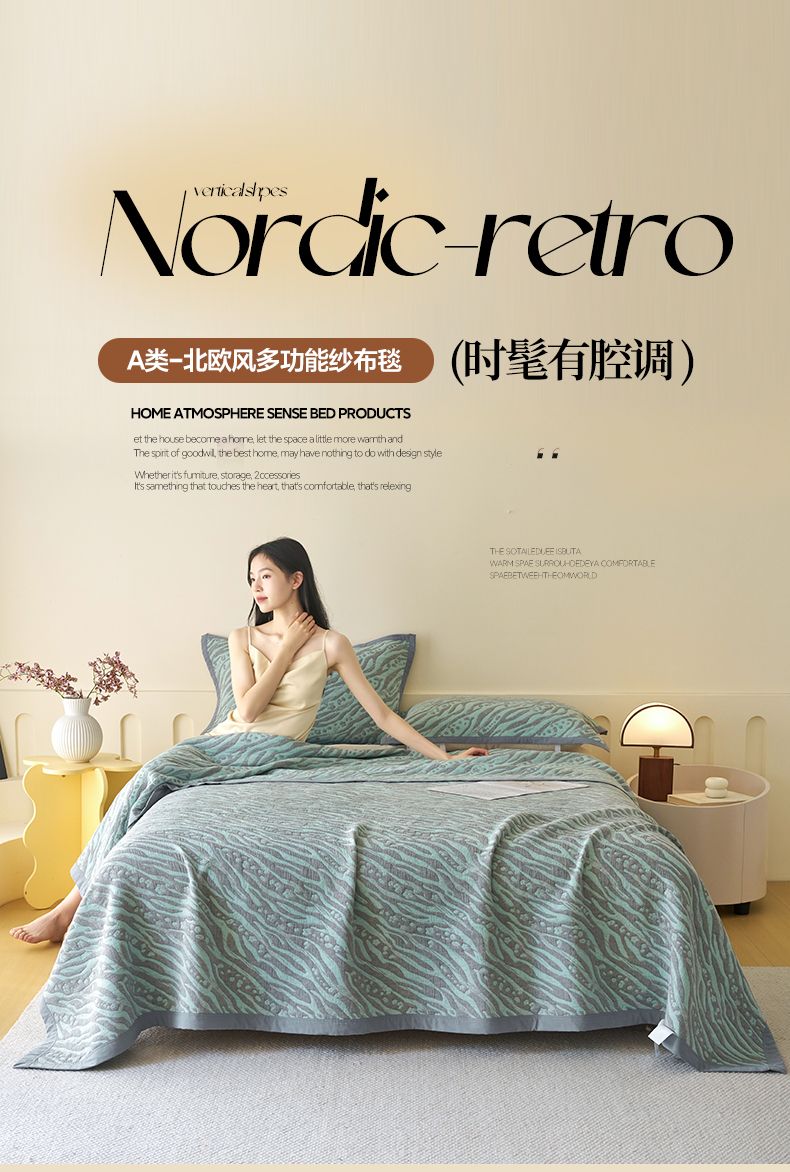 • 91家纺网 家纺一手货源 找家纺 棠薇家纺  2025新款北欧风盖毯毛巾被 木影湖灰