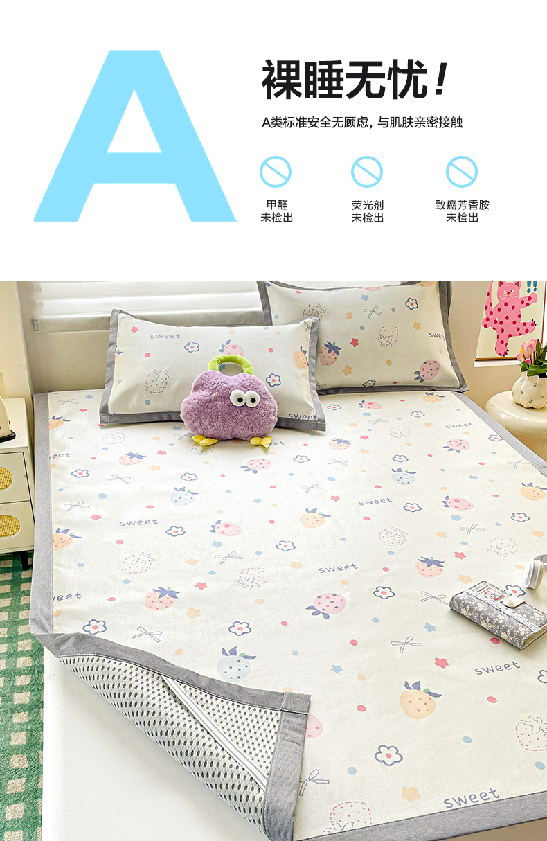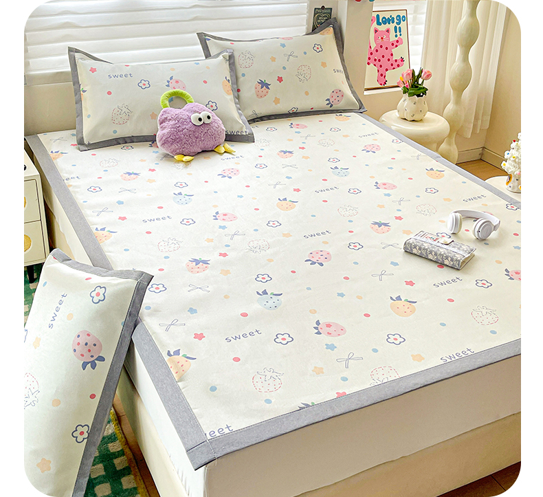商品名称:金盛纺 2025新款A类数码印花冰丝席-床席款 甜心果