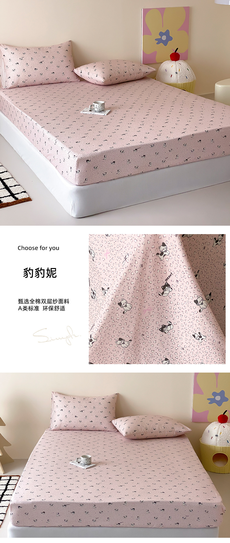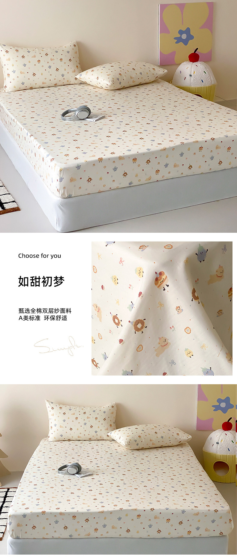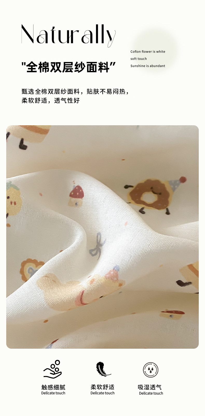 (总)时光里 2025新款双层纱系列卡通风床单,豹豹妮,啵啵乐园,布丁,可艾,萌宠宝宝-绿,如甜初梦,甜品屋-棕,小兔乖乖,竹汐恋,卡通风集合图