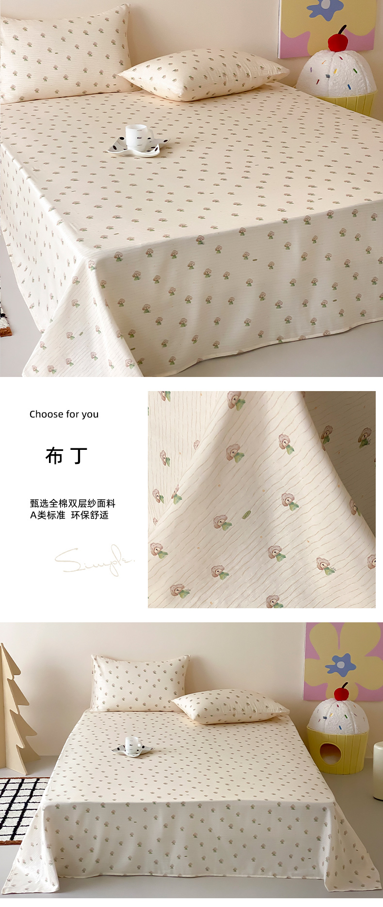 (总)时光里 2025新款双层纱系列卡通风床单,豹豹妮,啵啵乐园,布丁,可艾,萌宠宝宝-绿,如甜初梦,甜品屋-棕,小兔乖乖,竹汐恋,卡通风集合图