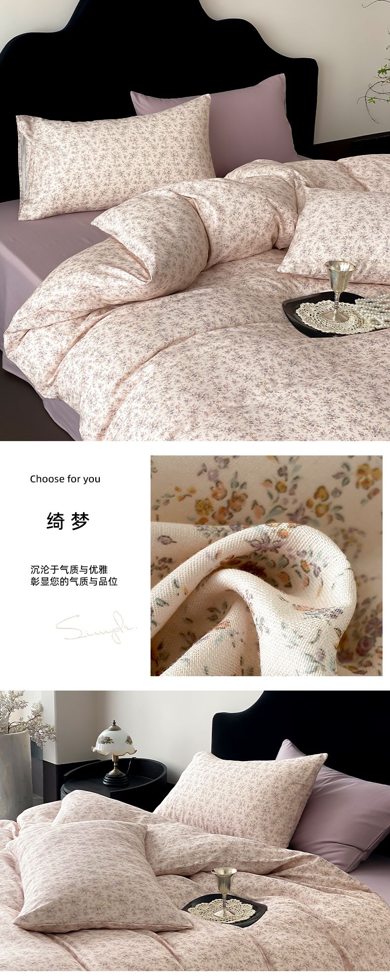 当前位置: 91家纺网 > 商品网购 > 床品套件 > 四件套 > 其它四件套 > 时光里 2025新款A类全棉双层纱复古花卉色单品与套件 春风里-紫