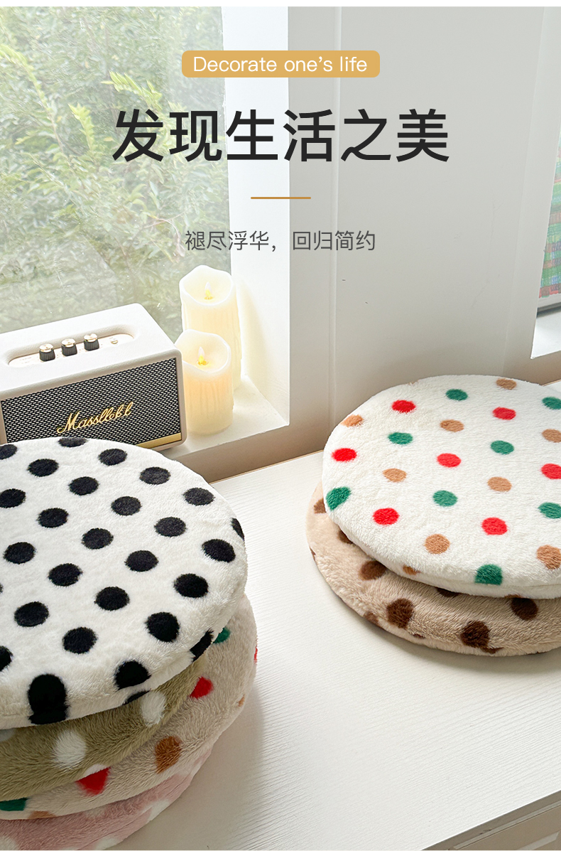 商品名称:美茉家居 2025新款兔毛绒波点坐垫 彩波白