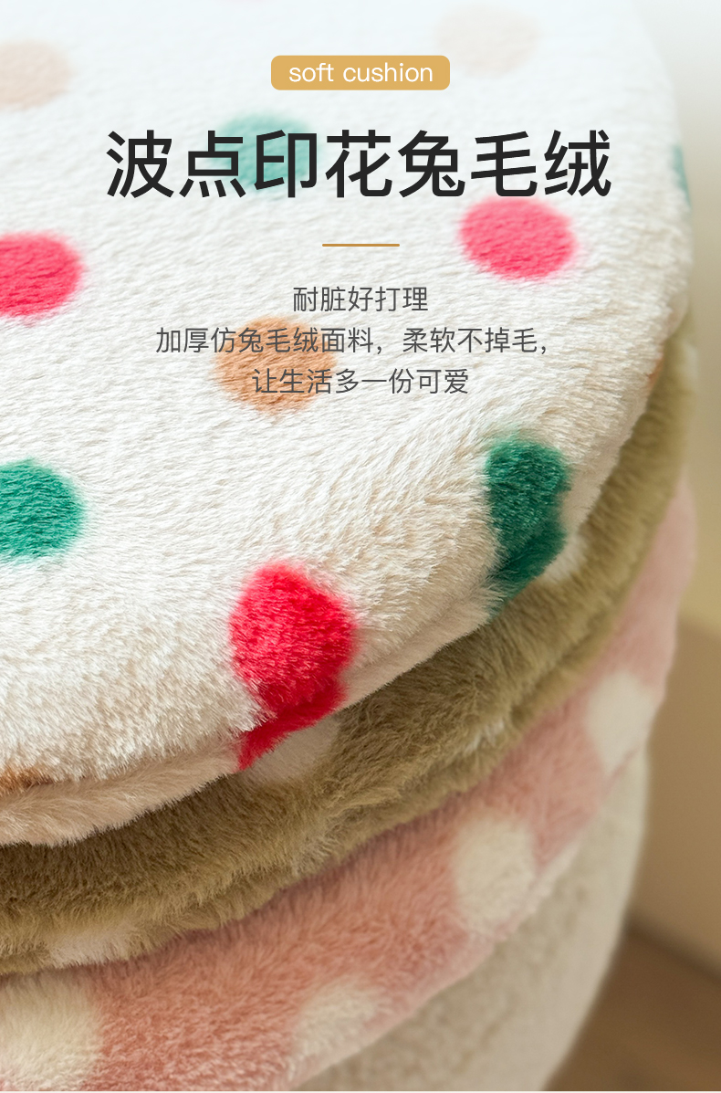 美茉家居 2025新款兔毛绒波点坐垫 彩波白