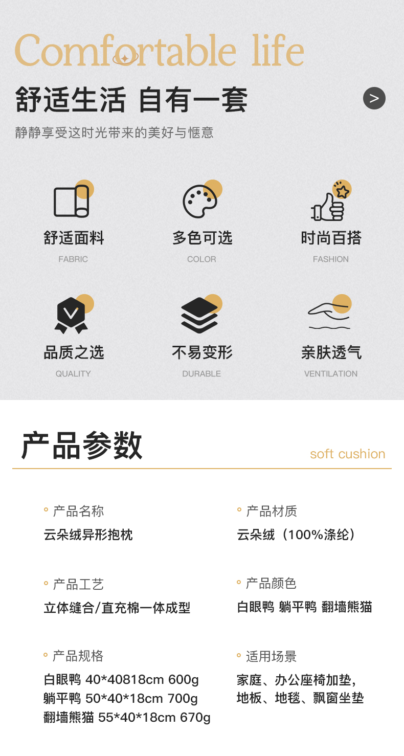 商品名称:美茉家居 2025新款云朵绒异形抱枕 翻墙熊猫