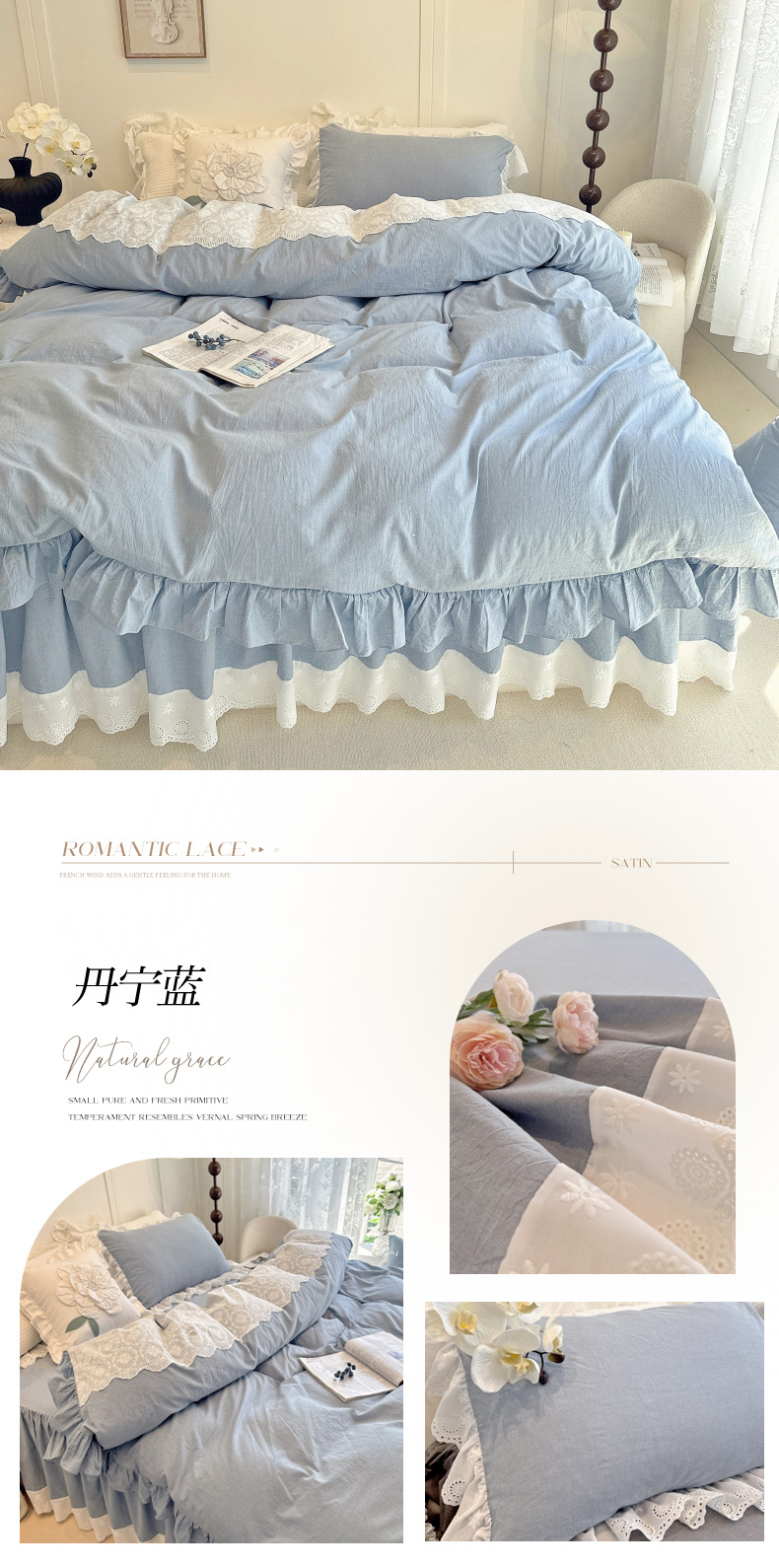 商品名称:胜权家纺 2025春夏新品全棉法式复古色织水洗棉床裙四件套系列 丹宁蓝