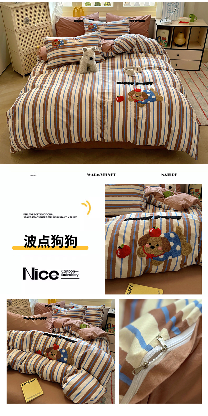 启程2025全棉13372毛巾绣四件套 波点狗狗