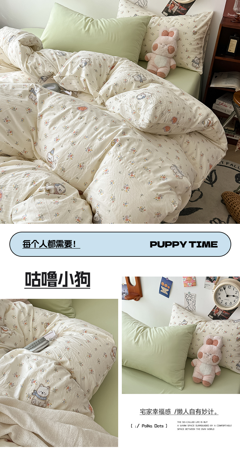 当前位置: 91家纺网 > 商品网购 > 床品套件 > 四件套 > 水洗棉四件套 > 罗亿家纺 2025新款软绵绵的双拼印花小清新云朵皱皱水洗棉四件套(含买家秀) 咕噜小狗
