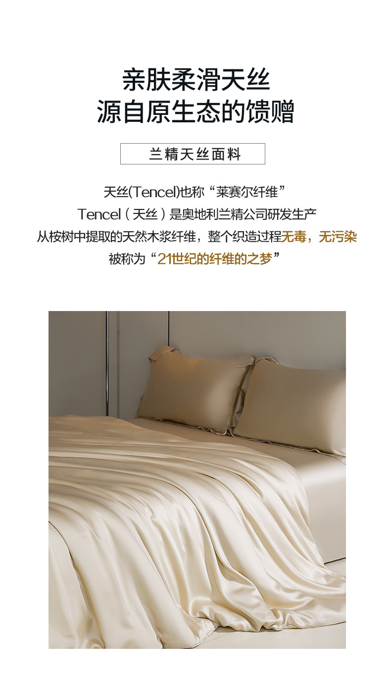 商品名称:简爱家纺 2025亲肤舒适60s兰精天丝四件套【可授权】 浅茶色